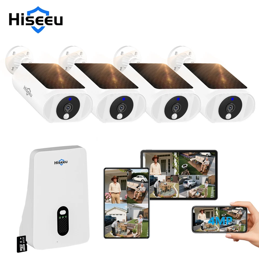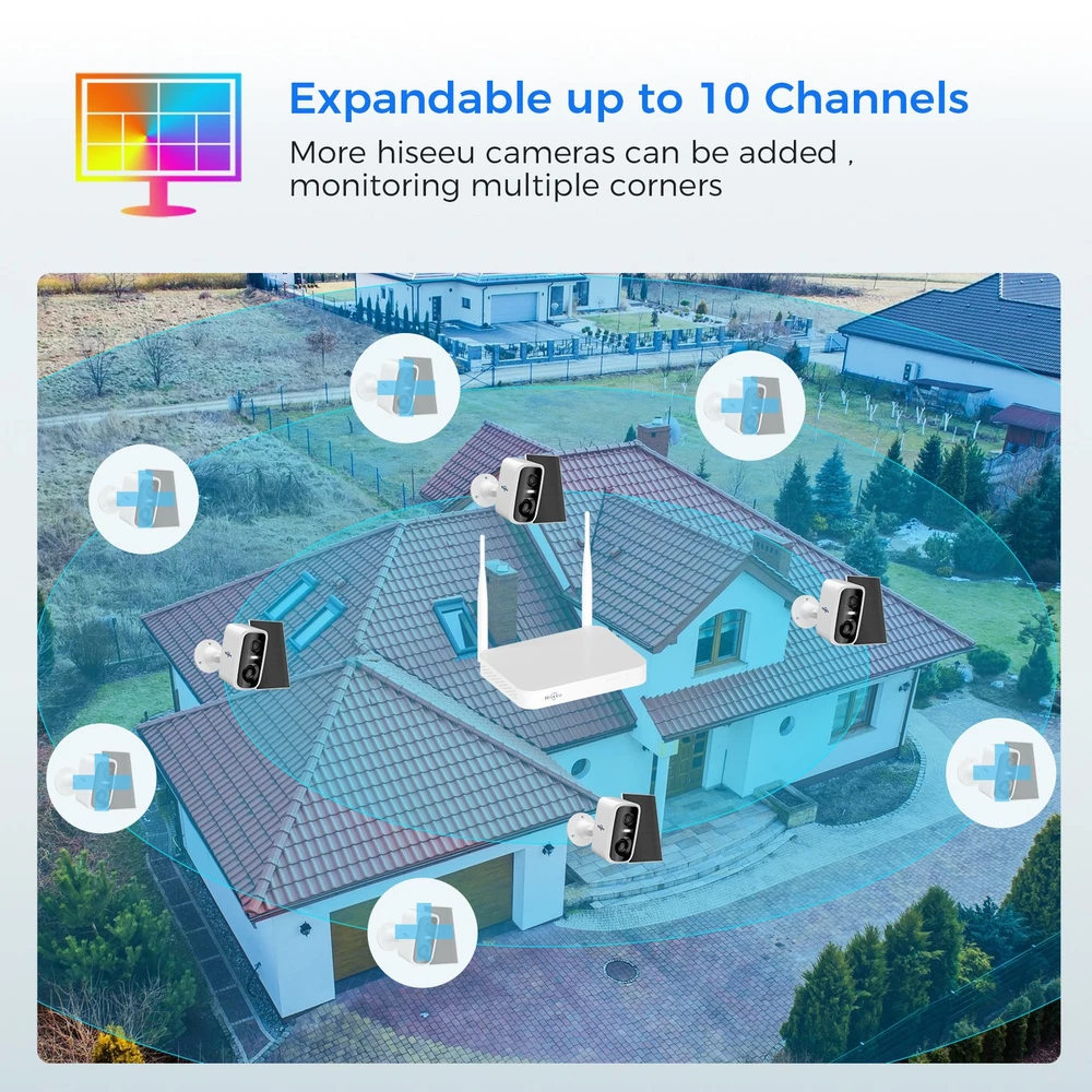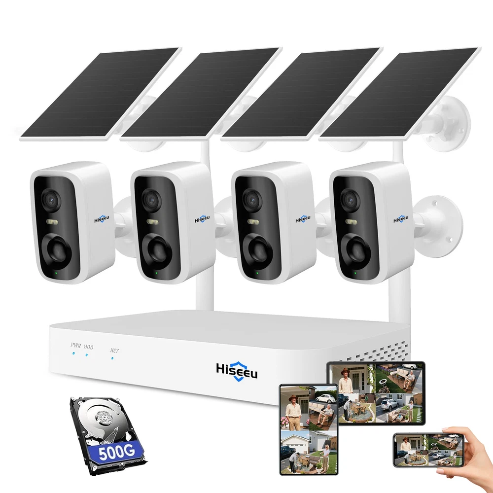Hiseeu 4MP 10CH Wifi Solar Battery Audio CCTV Security Camera System Color Night