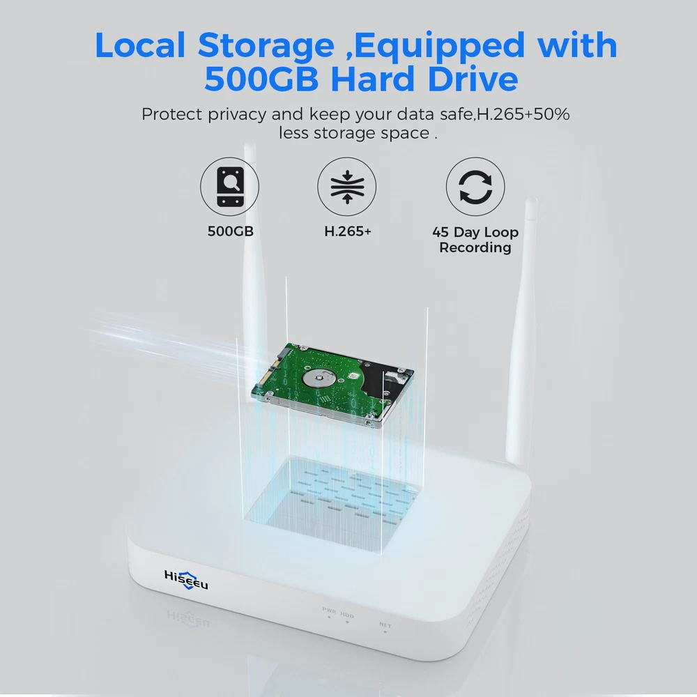 PRODUCT FEATURES: *4MP HD Solar Camera *Solar Power Supply *2.4G/5G Dual-band WiFi *Two-Way Audio *Full Color Night Vision *Cover More Area *Smart PIR Human Detection *Privacy Area Settings *3 Recording Modes *IP65 Waterproof *Expandable up to 10 Channels *Equipped with 64G SD Card/500GB HDD WELCOME TO BUY!!! Hiseeu 4MP 10CH Wifi Solar Battery Audio CCTV Security Camera System Color Night Please note: Type 1 (4PCS Cameras w/ Built-in solar panels+ Base station + 64G SD Card ) The individual purchase link for this product: https://www.ebay.com/itm/167799638274 Type 2 (4PCS Cameras w/ External solar panels+ Mini NVR + 500GB HDD ) The individual purchase link for this product: https://www.ebay.com/itm/167794336209 Link for standalone camera (can be added to Hiseeu NVR system): https://www.ebay.com/itm/405117876285 https://www.ebay.com/itm/406035534220 https://www.ebay.com/itm/406188797493 https://www.ebay.com/itm/405808021186 https://www.ebay.com/itm/405106577421 https://www.ebay.com/itm/404862621012 https://www.ebay.com/itm/403512772624 ①These cameras are equipped with four USB cables , but no charging plugs are included. ② A 500GB HDD has been pre-installed inside the NVR . You don't need to pay the subscription fee for cloud storage. ③The camera may have consumed some of its power in transit. Please connect the power adapter to the camera for more than 10 hours before use. ④"Uninterrupted recording"( record 24/7 ) drains the battery quickly. If you want to record in this mode, the camera should always be powered by a power adapter. If you have any questions about our products, please don't hesitate to contact us. About this item 【 True Wireless Battery Camera 】Hisseu wireless solar security camera with solar panel and powered by 5200 mAh rechargable battery. In sufficient sunlight, the high energy conversion rate 3.2w monocrystalline silicon solar panel can charge the camera fastly. The battery camera can sustain power for 40 Days in fully charged.It's 100% wireless camera. 【 4MP HD + Color NightT Vision 】Hiseeu 4MP HD outdoor security camera owns 2 modes of night vision: Infrared/Full color. You just need turn on the floodlight to view 4 Megapixel resolution full color night vision picture. Protect you property for 365 days. 【 2-Way Audio + Remote View 】Hiseeu outdoor CCTV camera designed with 2-way audio, talking with family members via the battery camera is always available. Downloading “EseeCloud” app on your smartphone(support Andriod and ios system), you can view the live footage remotely and playback videos. Sharing the solar camera with your family members through App. 【 Local Storage + IP65 Waterproof 】The NVR has already been pre-installed with a 500GB hard drive. You don't need to purchase cloud storage or SD cards. Video recordings can be saved and allows overwrite automatically on the 500GB HDD. With IP65 waterproof, wifi security camera adapts multiple weather. Like: sunny, cloudy, rainy and snowy, etc. 【 Professional Technical Support 】Hiseeu CCTV provide 1 year product warranty for all customers and excellent technical support.If you have any question with battery security camera, please feel free to contact with us.We will provide professional technical support and best after-sales service. Feature 4MP HD Resolution -- With 4MP HD resolution, Hiseeu battery camera provides you with all details to protect your property. Solar Powered -- With 5200mAh rechargeble battery and solar panel, Don't worry about battery lifetime of your Hiseeu solar security camera. Real wireless wifi security camera powered by 5200 mAh rechargeable battery protects your home every day&night. Color Night Vision -- With the floodlights on the outdoor security camera, full color night vision in long distance makes your home safer. See vivid details even in the dark with powerful infrared night vision (up to 7m / 23ft) and optional white light spotlight. Two-way Audio -- The two-way audio makes the real-time communication achieveable. You can talk with the person in front of camera anytime and anywhere. Talk and listen to visitors clearly with built-in speaker and microphone, featuring echo cancellation and noise suppression. Smart PIR Motion Detection -- As the battery operated camera, the smart PIR motion detection function makes you receive the alert notification you need and reduce false alarms. Cover more area -- The visible angle of the image sensor is 105 degrees horizontally, 58 degrees vertically and 123 degrees diagonally. With a 135° wide-angle view, spot intrudershiding in the corners. Privacy area settings -- Block part of the screen with color blocks to protect privacy. Configure privacy zones to shield sensitive areas from view, ensuring respect for personal spaces and community harmony. 3 Recording Modes -- The "Uninterrupted Recording" mode is extremely power-consuming. When the camera's battery level drops below 50%, it will automatically switch to "Opyimal Surveillance" mode. If you want to set the 24/7 recording mode, the camera needs to be connected to a power adapter all the time. Local Storage -- The NVR has already been pre-installed with a 500GB hard drive. You don't need to purchase cloud storage or SD cards. It makes recording more convenient and impressive. You will never miss any memorable moment. Expandable up to 10 Channels -- The NVR system can be expanded to a maximum of 10 channels. You can add more different Hiseeu cameras. Please contact us and let us know your requirements for the camera. Package Includes (For type 2) : 4MP Solar Camera (with solar panel)*4 10 Channel NVR(Pre-installed 500GB HDD)*1 USB Cable*4 12V-2A Power Supply *1 Mouse*1 HDMI Cable*1 Screw Bag(for camera)*4 Screw Bag(for solar panel) *4 User Manual*1 Warning Sticker*2 Payment Delivery details Terms of sales About us Contact us Payment 1. All payments must be prepaid. 2. We only accept payment via Paypal. Please kindly check if you can pay via PayPal before placi