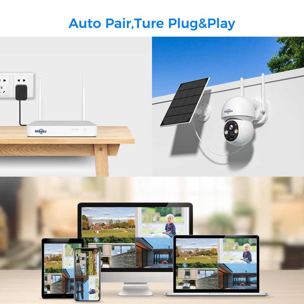 Hiseeu 4MP PTZ Solar Wireless Security Camera Kit with 1TB HDD
