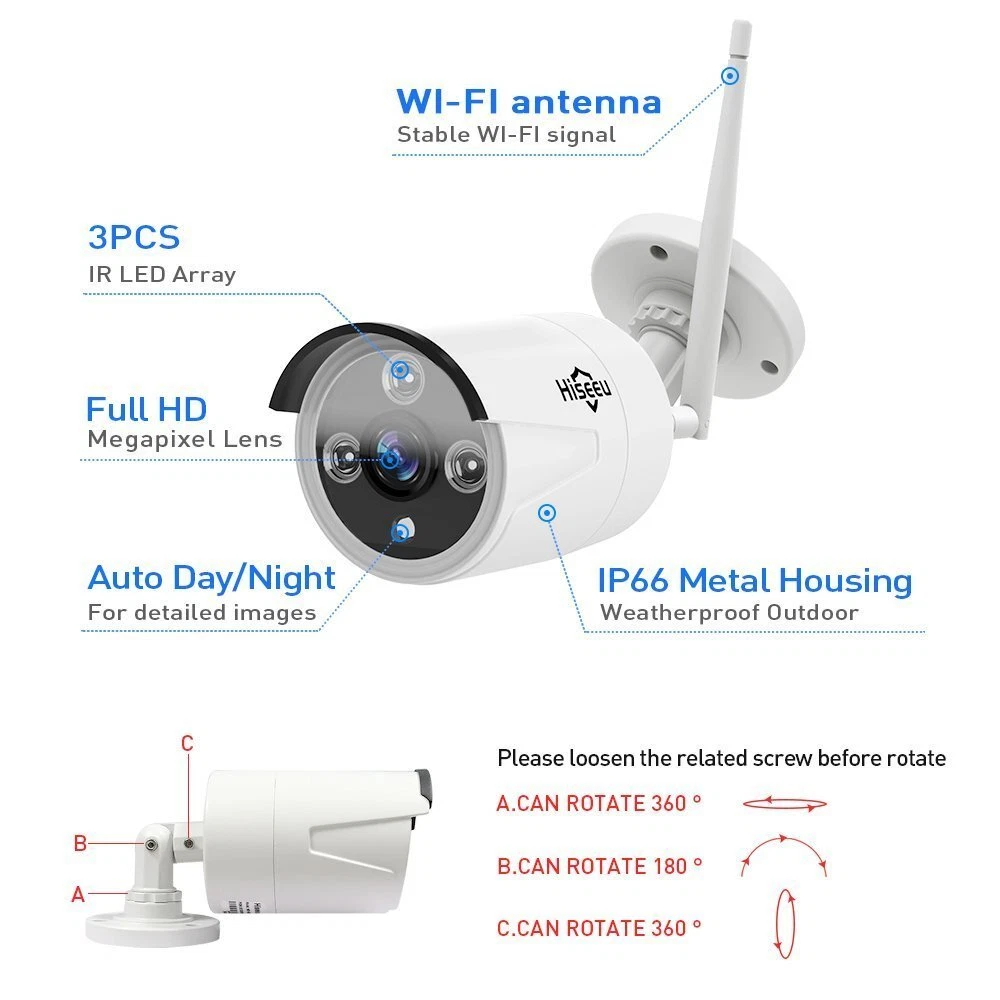 【10inch Monitor, Need Plug Power Supply】Wireless video security system wireless CCTV camera system features a 10" full HD 4K monitor (Not Touch Screen) with built in NVR. It is easy to setup and DIY installation. True plug and play. The wireless cameras and NVR monitor are auto-paired during the factory setting. You just plug all the power supply and connect TV monitor to NVR with a VGA/HDMI Cable. (NOTE: They all need to plug in the power adapter) Please note : 1.Wireless means wireless Internet connection, but also need to be plugged in the power supply/outlet for 24/7 recording 2.this camera have black and white ,pls choose the color that you need . About this item 【10inch Monitor, Need Plug Power Supply】 Wireless video security system wireless CCTV camera system features a 10" full HD 4K monitor (Not Touch Screen) with built in NVR. It is easy to setup and DIY installation. True plug and play. The wireless cameras and NVR monitor are auto-paired during the factory setting. You just plug all the power supply and connect TV monitor to NVR with a VGA/HDMI Cable. (NOTE: They all need to plug in the power adapter) 【Expandable 10 Channel Cameras】 Please search: B07K1CZN1L to order the extra camera to add to your camera system, This system includes 1x 10-channel 8MP (4096*2160) 10.1" LCD Monitor NVR and 4 x 5MP (2560*1920) wireless IP66 waterproof cameras. Connect the NVR and cameras with power adapter, cameras coming with 10ft cable power supply, it is more convenient to install. 【Waterproof& HD Video】 Records in 5MP Full HD to capture sharp and crisp images, provide crystal-clear HD live video, in order to crisp smooth footage day and night the bullet cameras build in 3 array IR cut filter with auto switch. Up to 15m Night Vision, The IP 66 weatherproof aluminum housing material to keep Indoors & Outdoors recording. 【Remotely Anytime and Anywhere】 Wireless surveillance camera system allows you to view the live video remotely anytime and anywhere by Phone and Pad (available for Android & IOS system). Download free APP “EseeCloud” from Android Google Play or Apple APP Store. Register a New Account, then add by device ID. You can view the Video by WiFi or 4G/5G Network. Supporting Windows and MAC OS system computer download Eseecloud software to remotely check. 【Dual WIFI NVR 】 Dual WIFI NVR support 2 ways to connect with network: connect with network by Ethernet cable or connect with 2.4Ghz or 5Ghz WIFI network. 【Preinstalled 1TB HDD & Cloud Storage】 H.265+ compression will save the HDD storage, 4Pcs cameras can store 30 days 24/7 days time recording, also provide cloud storage on cellphone app, but it is not free to use, each channel need buy cloud storage one by one. Please Note: camera can be wirelessly connected to the network, but it must be powered by power supply. if you miss power adapter, please tell us to get a replacement one. Wireless Surveillance NVR Kit: This All-in-One 10 Channel 8MP (4096*2160) 10.1" LCD Monitor NVR and 4 x 5MP wireless IP66 waterproof Camera. Cameras and NVR connect and set up in few minutes. There is no exposed lines anymore between camera with NVR box , more beautiful, more hidden, more safely. (Warm Note: all the cameras and NVR box need connect power supply) View the video on the mobile App from anytime and anywhere, remotely check the system on phone or computer, please connect the NVR with router by Ethernet cable or wireless connection (support 5G wifi connection) Strong anti-interference and 65ft night vision, 2304 *1296 image sensor shows more clear and stunning picture and video. Supports multi-alarm triggered (Video Loss, Motion Detection) and alarm Sound, Email, Phone, etc). Suitable for home and small project which help you record, playback, and remote. Item Feature IP66 Weatherproof IP66 super waterproof grade and dustproof, durable outdoor weatherproof casing no matter windy or raining. Install the cameras outdoor or indoor, keep your home or business safe. Note:Power adapter is not waterproof. Day/Night Camera 3MP image sensor makes clear and stunning high-def video. All cameras are equipped with infrared night vision. They can capture clear footage up to 65ft away in pitch-black darkness. Motion Detection This motion-activated email alert function allows you to always stay connected to all the unexpected movements happened in your house. An alarming email will be sent to your inbox. Expandable 10 Channel System The camera system is one-way audio, you can add other wireless cameras from heseeu brand to the NVR. Additionalcamera models to suit your different scenarios. We currently have Bullet 2-Way Audio Cameras, Dome Cameras, PTZ Cameras, Battery/Solar Cameras, looking for a suitable extra camera, please check my shop or contact us. One-way Audio Function Built-in the microphone,so you could not only view the video,but also clearly hear the people on phone app or monitor. Notice:There is no speaker in the camera, so you can't make conversation with people. 24 hours 30 days Reliable Video Recording 1TB Hard Drive Pre-installed in the WiFi NVR enables 30 days video recording (up to 6TB supported) This system allows all cameras recording at the same time. Video Playback at Any Time Replay significant evidence or funny video records. Quick search for any event video. Playback any video on different days, hours, or minutes by controlling the timer axis under the split screen. True Plug and Play The easiest wireless NVR security camera system ever! Power on and all is done! It releases you from messy cablings.No configuration and no need to hire an installation company! A real plug and play security camera system! True Wireless WIFI Connection No ethernet cable is needed to link between the NVR and the router any more, true wireless wifi connection.Freely move the 3MP NVR close to camera, camera will receive stronger wifi signal. Audio Record Sound IP Camera Built-in a integrated microphone let you hear the sound a