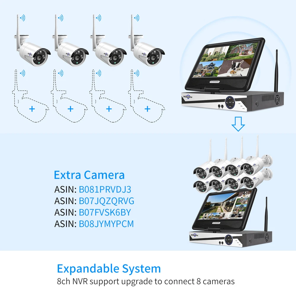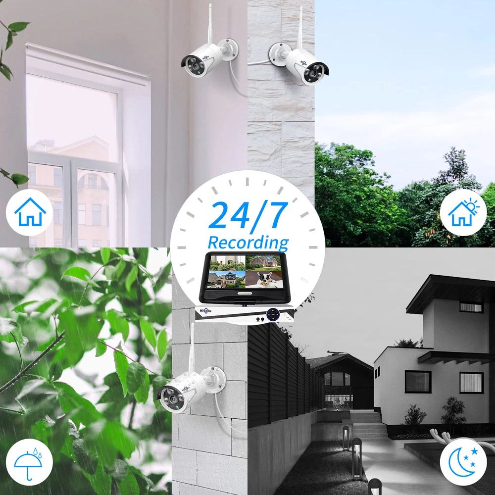 【DC12V Power Plug-in & Easy Setup】Wireless means camera and NVR is wireless connection,camera(No battery) and NVR still need work with power cable. The wireless video security system is easy to setup and DIY installation (need DC 12V plug power supply),these WIFI cameras are paired with NVR at manufacturing site.Connect PC/TV monitor to NVR by a VGA/HDMI cable.Finally power on and serve yourself with 24/7 surveillance,true plug and play. 【Stunning 2K Ultra HD video & One Way Audio】 3.0MP presents 2304*1296 Mega Pixels about 1.5 times clearer than 1080P. Camera with 3 array Infrared LED allows you to see up to 65ft night vision even in darkness. Employing IP66 Waterproof metal material housing, cameras can be used indoor and outdoor. Outdoor security camera system also allows you to see a Hiseeu WIFI Wireless Security Camera System Audio 10CH NVR 3MP CCTV Kit Lot Please note :this listing have many types cctv system ,pls select which you need one . About this item: [All-in-one 10 inch LCD Monitor, Easy Setup] The wireless security camera recorder equipped with 10 inch screen monitor(Not touch screen), 1296P full HD display clear image which view angle will be more widely. The cameras and NVR monitor are auto-paired during the factory setting. Just need to connect the wireless cameras and NVR with power supply provided for 24/ 7 surveillance purposes. Wireless means camera and NVR is wireless connection, camera and NVR still need work with power cable. [Expanable 8 channel cameras] This 8CH 1296P (2304*1296) 10 " LCD Monitor NVR wireless camera system up to work with 8pcs cameras, supported original kits’ one way audio camera, two-way audio camera,PTZ camera and battery camera.Meet all your needs. [Stunning 2K Ultra-HD video, one Way Audio] 3MP presents 2304*1296 Mega Pixels about 1.5 times clearer than 1080P. Camera with 3 array Infrared LED allows you to see up to 65ft night vision even in darkness. Employing IP66 Waterproof metal material housing, cameras can be used indoor and outdoor. Outdoor security camera system also allows you to see and listen to people on your property remotely. [1TB HDD Storage, Remote Playback] With pre-installed 1TB HDD, it can keep around 30+ days of 24/7 videos for 4 cameras simultaneously without overwriting. With FREE Eseecloud APP, for android and iPhone, all videos in the HDD can be playback remotely in your hand anywhere anytime. 8 channel NVR comes with advanced H.265+ compression ensures more stable and clearer viewing experience, saves 50% hard drive capacity. [AI Human Detection] Reduces false alarms -- Compared with the traditional motion detection alert, the Hiseeu 3MP camera adopt more advanced AI human detection technology in 2021. Advanced AI technology for home security camera systems distinguishes humans from animals or objects within the monitoring range reducing false alarms. When an intruder enters the monitoring range, the screen will display the human frame will be triggered. Notice: The wireless system doesn't mean you can use the system without any cables. Power supply still needed to power on the cameras and NVR. WIRELESS SURVEILLANCE NVR KIT NVR Features 8CH 2K wireless NVR recorder with 10 " LCD monitor and 1TB hard drive pre-installed Support Android/IOS/PC remote view, remotely check the system on phone or computer, please connect the NVR with router by Ethernet cable or wireless connection (doesn't support 5G wifi connection) Power dissipation: ≦ 5W Package 1 : 1 x 8Ch 1296P NVR with 10 " LCD monitor pre-installed 1TB surveillance hard drive 1 x 3.3ft power supply (12V-2A) for NVR 4 x 2K wireless securty cameras 4 x 10ft power supply (12V-1A) for cameras 4 x screw bag (for camera) / camera antenna 1 x user manual / USB Mouse / 3.3ft network cable 2 x surveillance warning notes Payment Delivery details Terms of sales About us Contact us Payment 1. All payments must be prepaid. 2. We only accept payment via Paypal. Please kindly check if you can pay via PayPal before placing order. Delivery details 1. packages will be sent out within the same day or 1 working days after the payment is received. 2. Orders place on the weekends will be shipped out on next Monday or Tuesday (holidays excluded). 3. Local pickup is not available. 4. We regret that we can not be responsible for any wrong or undeliverable addresses. 5. We'll pay for export custom tax,Buyer should pay for import custom tax if needed. Terms of sales 1. We automatically submit positive feedback to our buyers once the order is finished. 2. If you are satisfied with our product, please leave Positive Feedback , which means a lot to us, thanks in advance. 3. PleaseDo not leave Negative or Neutral Feedback before Contacting us, leave negative feedback can not solve any problem, but we will work with you to resolve those problems. 4. Please feel free to contact us viaEbay Message or E-mail.We generally reply messageswithin one business day, butexcept holidays. About us 1. We guarantee against any defective products. 2. We provide 30 days money back on non-defective, undamaged, unused and resalable products. Restocking fee and other fee may apply upon the condition of returned products. Shipping and handling fees are non-refundable. Product is not eligible for refund after the 14-day refund period is expired. 3. For any returned product, please contact us through ebay message firstly, we will work on resolving your particular case ASAP. Contact us If you have any question please feel free to contact us, we will respond within 1 business day or less, except holidays.