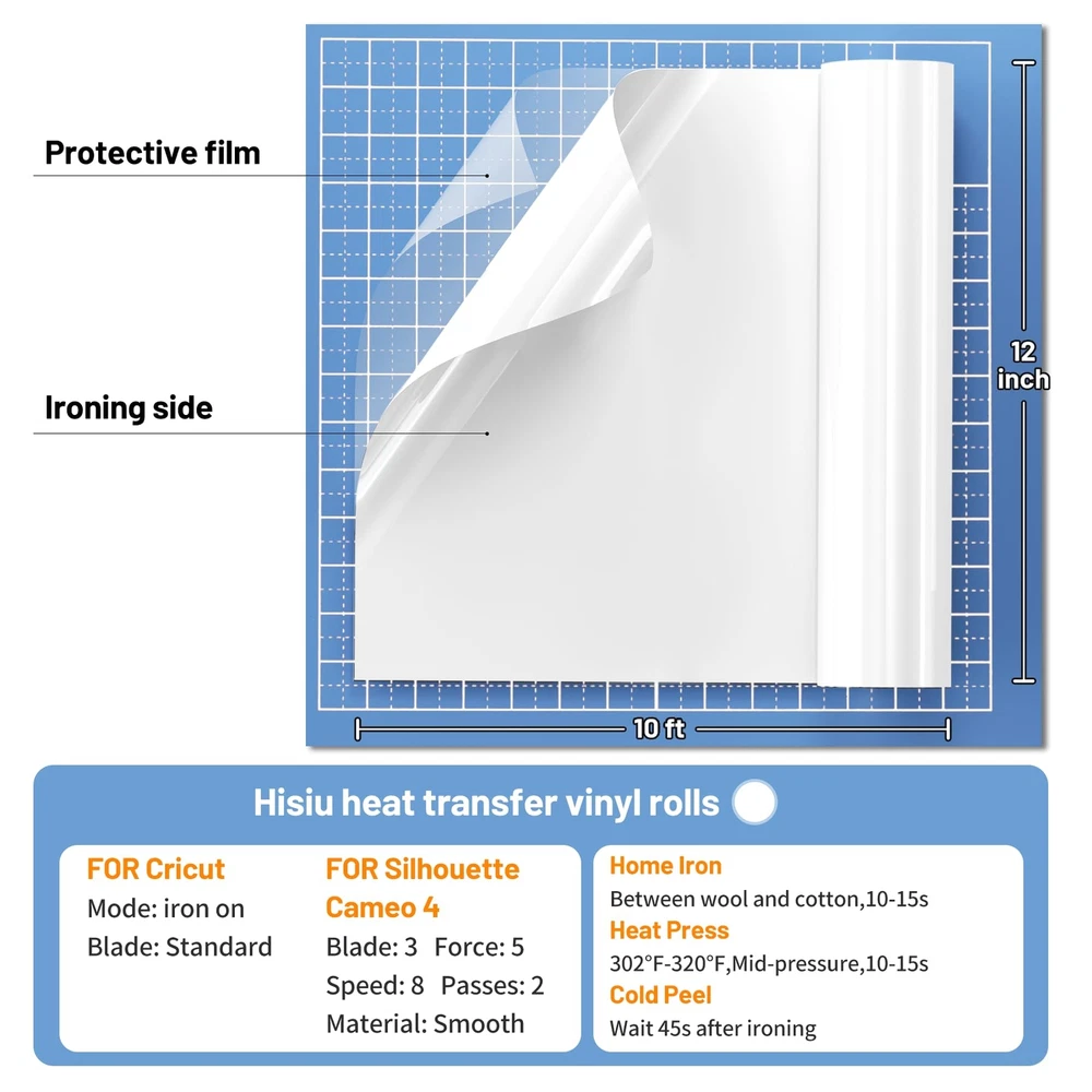 HTV Heat Transfer Vinyl: As a DIY enthusiast, Hisiu has always been committed to making sure that all DIY enthusiasts and artists are able to focus more on the design itself, rather than the technical difficulties of the DIY process Vinyl Support All Cutter Machine: (A test cut is always recommended) Hisiu heat transfer vinyl, not permanent vinyl. Our heat press vinyl is compatible with all cutting machines and fits 12 and 24 cutting mats Widely Used HTV Vinyl: Hisiu iron on vinyl is suitable for cotton, polyester, wool,canvas, denim, linen and other fabrics. It can be used for customized t-shirts, dresses, sweatshirts, jackets, pillows, backpacks, yoga pants, baseball caps and more. Safe material, skin-friendly texture, for both adults and children Machine Washable, Super Adhesive, Durable: Hisiu sport flex iron on vinyl has been tested more than fifty machine washes, keeping each wash at about forty minutes, and will not fade, tear or crease after washing Easy to Cut & Weed & Transfer: Hisiu HTV heat press vinyl is very sensitive to temperature and pressure and very easy to transfer. The material itself is soft, easy to weed, will not cause damage to the pattern due to adhesion, and perfectly reproduces your creative inspiration (It is better to press the required part so as not to be lifted when weeding)