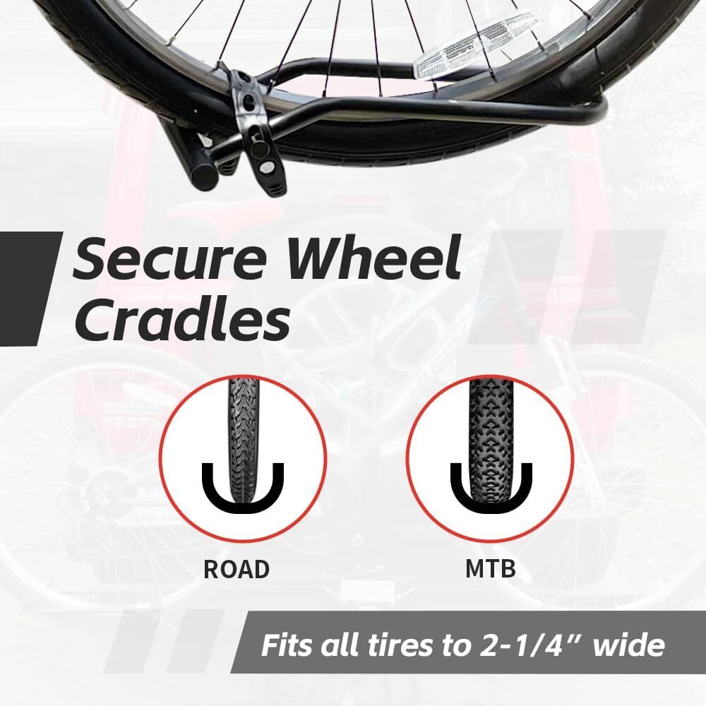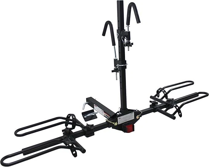 Vehicle Service Type Car, SUV, Truck, Trailer w/ Hitch 50027 Hitch Mount Bike Rack Platform - Style 2-Bike Rack for Cars Trucks SUVs Minivans with Hitch Tightener, Great For E-bikes With Standard Width Tires [Enhanced Durability]: Built to last, this hitch adapter fits standard 2" hitch receivers. It features robust construction and can support up to 75 lbs, with a maximum of 38 lbs per bike [Versatile Hitch Compatibility]: Suitable for Class I, II, III, and IV hitches, this bike rack adapter is versatile enough for various vehicle types [Secure Bike Transportation]: This bike rack platform securely holds and transports two bicycles. The adjustable hooks and tire cradles can accommodate bike frames with wheel diameters from 20" to 26", wheel widths up to 2-1/4", and wheelbases up to 63" [Compact Design]: Designed with a removable vertical post, it allows for compact and space-efficient storage [Stable Design]: The built-in locking knob ensures the main upright remains stable, significantly reducing wobble during transport for a smoother ride Item dimensions L x W x H 60 x 24 x 33 inches Load Capacity 40 Pounds Per Bike Mounting Type Hitch Mount Global Trade Identification Number 00812351030274 Automotive Fit Type Universal Fit