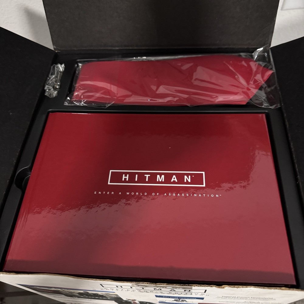 Hitman Collector’s Edition for PlayStation 4 by Square Enix. Includes Agent 47 statue (seated with gun), a hardcover artbook with 60 pages, a red tie & clip set. Everything comes in the original collector’s box, which shows visible wear but contents are in excellent condition. A premium set for fans of stealth-action games and collectors alike.