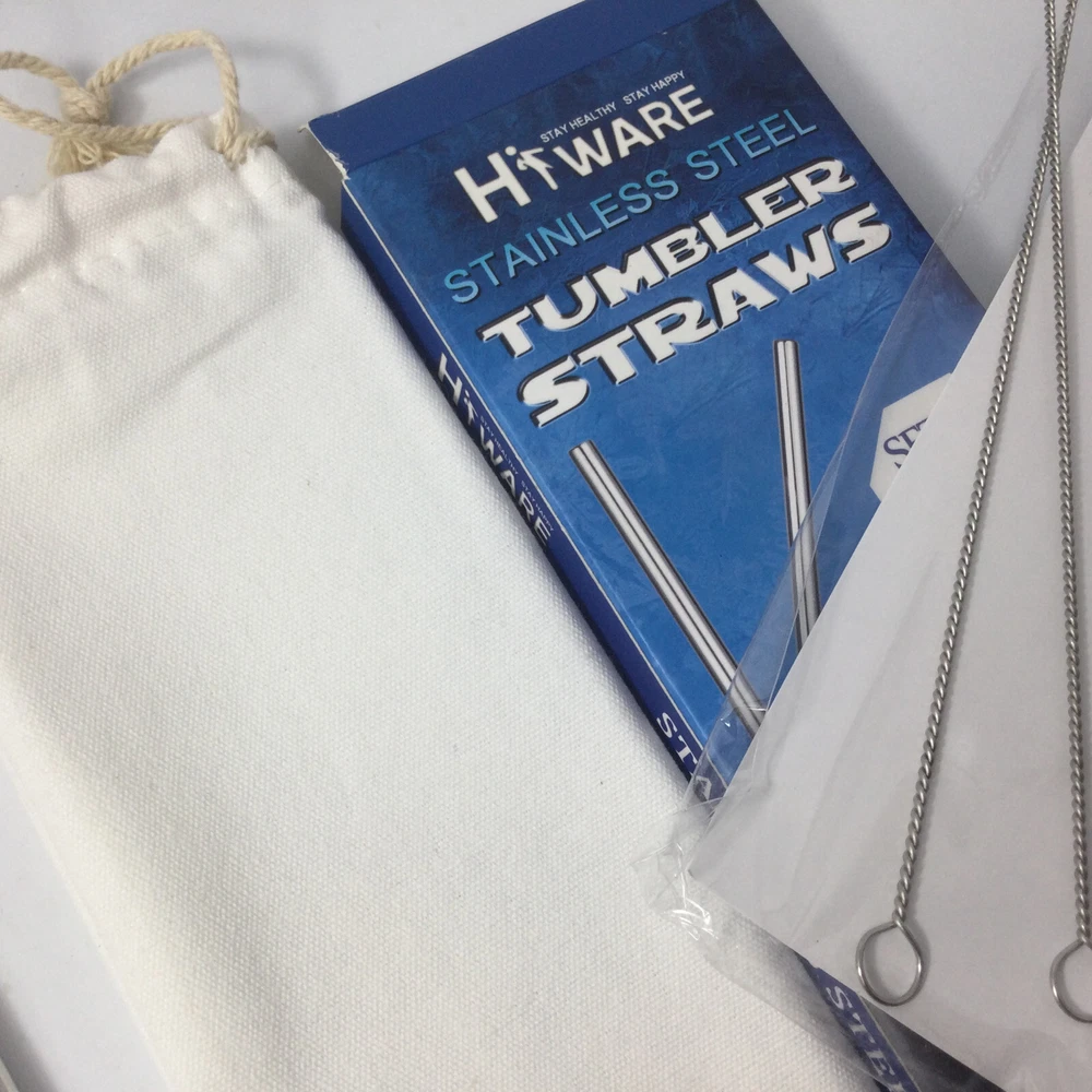 Hiware Stainless Steel Tumbler Straws Set of 10 Open Box New. 5 x 8.5" long 5 x 10.5" long. New. never used. Open box /original box included 12 straws/. It will come with 2 cleaning brushes and a storage, fabric bag. InvN/ES/1