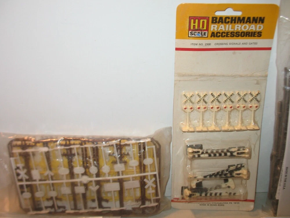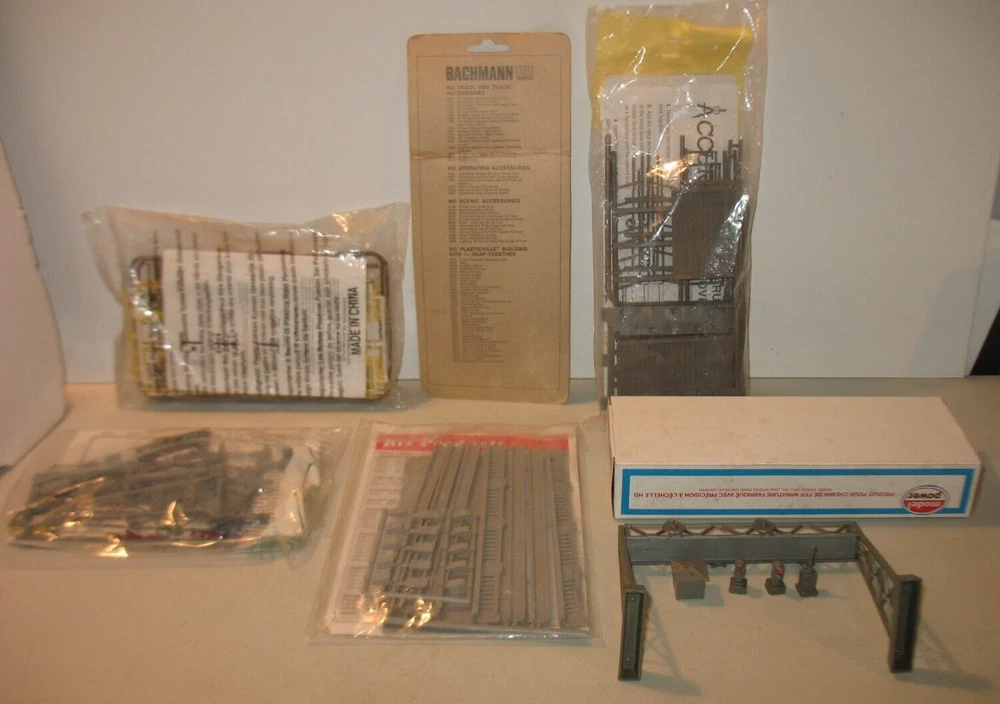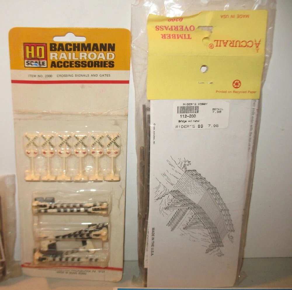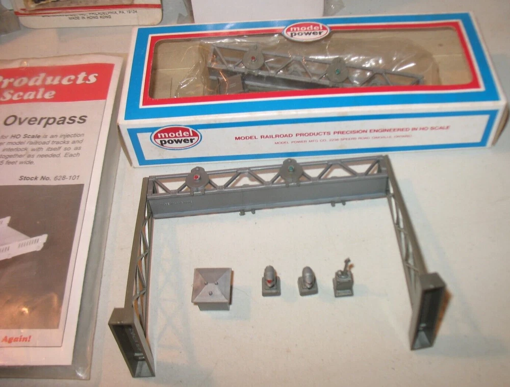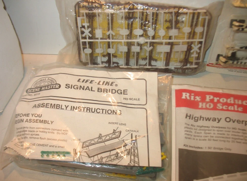 Elevate your model train layout with this comprehensive HO Scale Big Accessories lot featuring bridges, signal bridges, signs, and crossing gates. Designed with precision for the 1:87 scale, these multicolored pieces are made from durable plastic, ensuring longevity and resilience against the rigors of a bustling miniature transportation hub. The set includes a variety of essential elements to complete your scenery, including signal towers that add operational realism to your tracks. Whether you're a seasoned modeler or just starting out, these accessories from various brands will infuse character into your rail landscape, making every journey through your miniature world a visually engaging experience. Rix Products Highway Overpass. Item # 628-101 Accurail....Timber Overpass...Item # 200 Life-Like...Signal Bridge....Item # 8215 Bachmann...Crossing Signals & Gates....Item #2300 Traffic signs & Phone poles Signal Bridges...two bridges Please look at pictures as they are part of description....Any questions please ask.