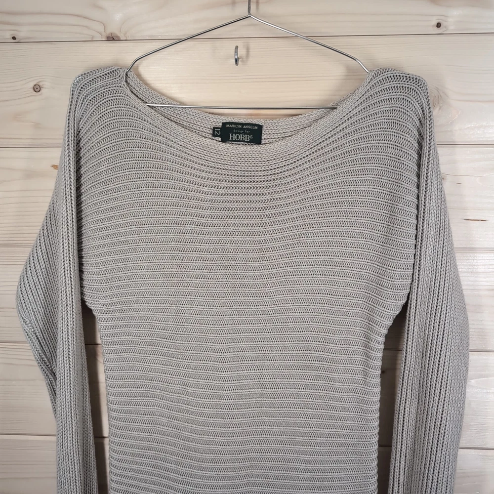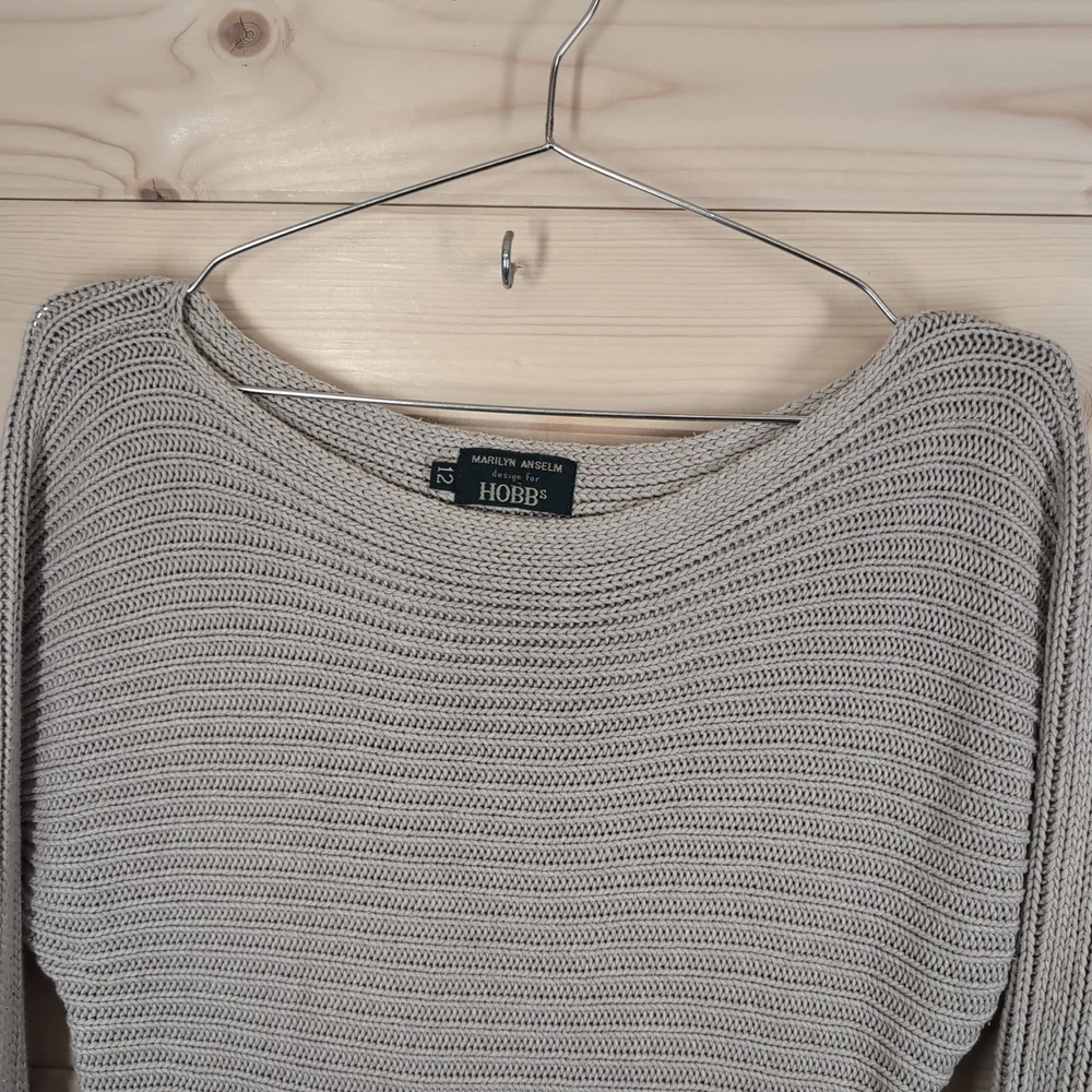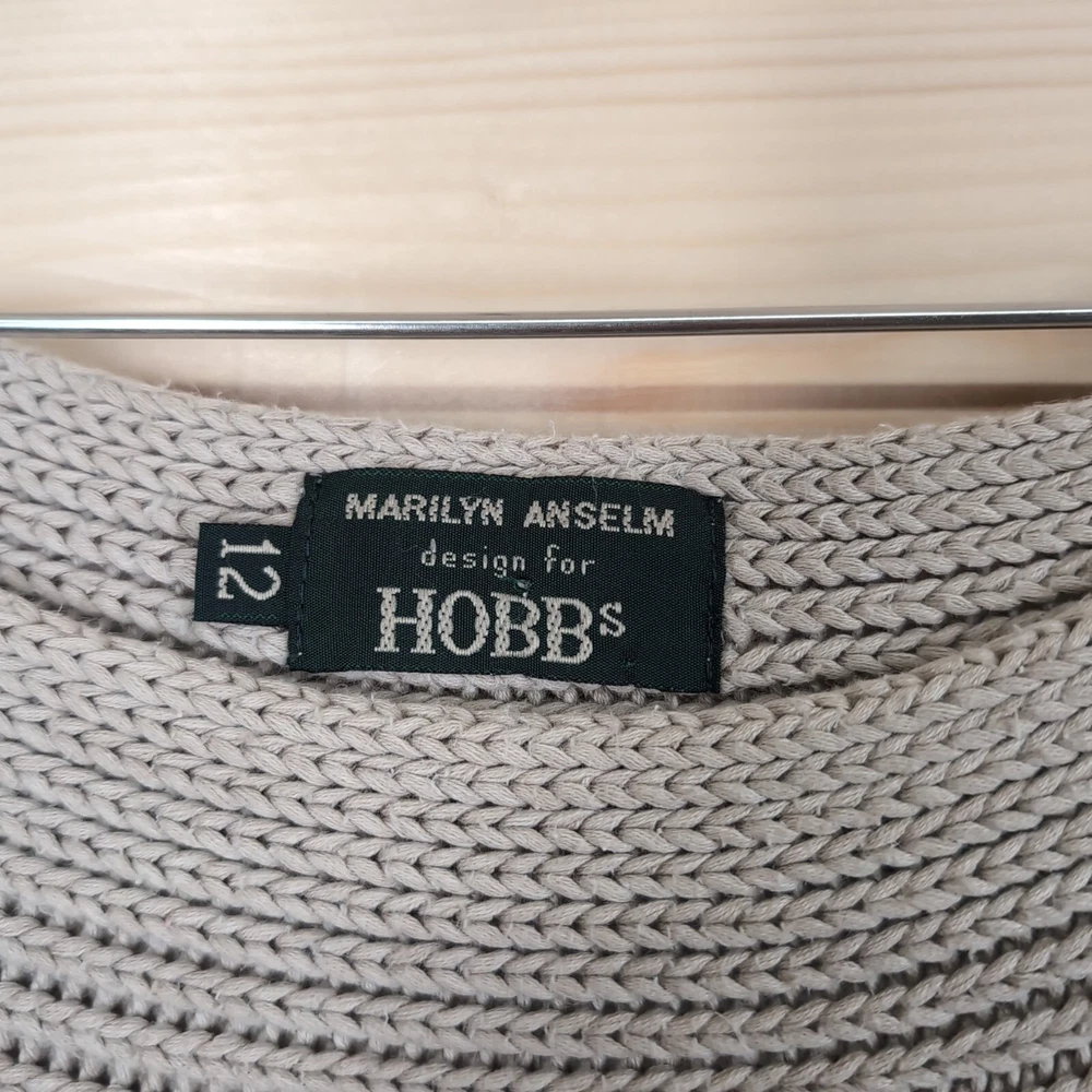 Department: Women Pattern: No Pattern Garment Care: Machine Washable Knit Style: Chunky-Knit Fit: Regular Size: 12 Brand: Hobbs Material: Cotton Size Type: Regular Occasion: Casual, Formal, Travel Type: Jumper Neckline: Round Neck Personalise: No Country/Region of Manufacture: Unknown Theme: Retro Fabric Type: Knit Vintage: Yes Colour: Beige Season: Autumn, Spring, Winter Sleeve Length: Long Sleeve Style: Pullover