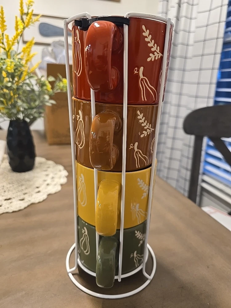 Hobby Lobby 4 Piece Coffee Mug set with Stand Fall Autumn