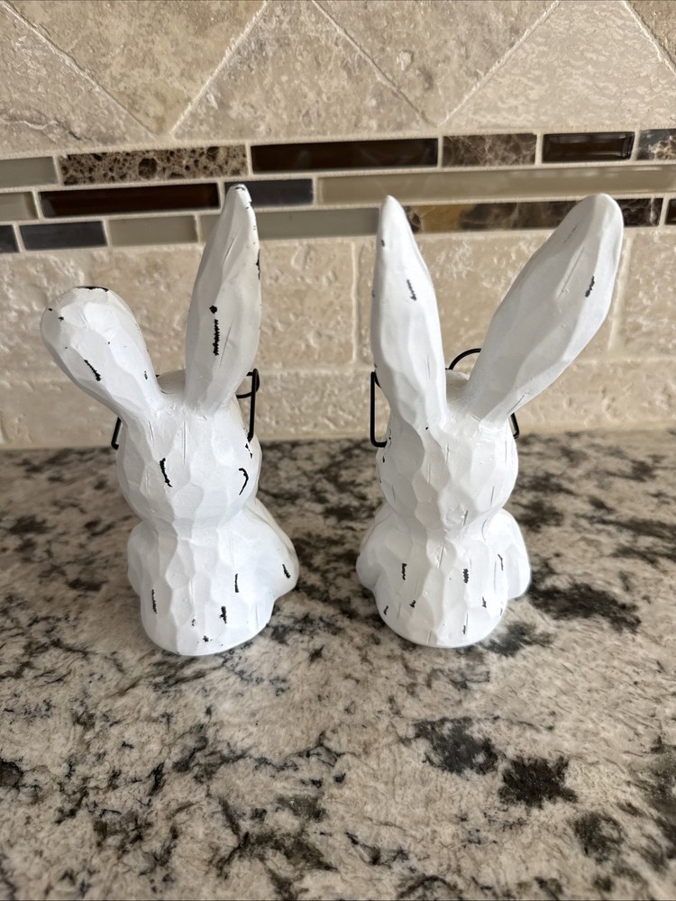 The Hobby Lobby farmhouse style distressed Wire Easter Seasonal Decor 2025 is a contemporary style ceramic figurine of a white rabbit, perfect for any room during the Easter season. This free-standing piece measures 6 inches in height and 3 inches in width, with a matte finish. It is a charming addition to any home decor, representing the theme of animals and dinosaurs. Easy to clean with a damp cloth, this figurine from Hobby Lobby is a unique and delightful accent for the holiday. New without tags
