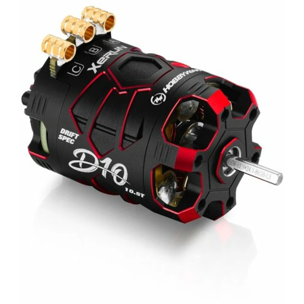 Hobbywing 30401135 Xerun D10 brushless Drift Motor - 10.5t 4600kv Passion Edition Your most trusted on-line local hobby shop since 2003 We're here to help you with all your RC model questions. Don't hesitate to reach out to us for help with keeping your models working perfectly. Our brick and mortar store in Massachusetts USA has recently closed, but we will continue to operate on eBay. Search out or web site if you're interested in the story. All of our items are new, and in original packaging. Hobbywing 30401135 Xerun D10 brushless Drift Motor - 10.5t 4600kv Passion Edition Our stock number: HWI30401135 Elegantly designed for drift The Xerun D10 motors provide the ideal colors to perfectly match your drift machines. Available in Black, Red, and Purple. Banana plug-in quick-swap design The motor comes factory soldered with high quality 3.5mm banana plug for easy access swap to different motors. 3.5mm male head is also included in the XD10 ESC. New stator designed for drift applications The new motor stator is optimized for drift and improves motor efficiency in drift applications. Built-in with high-precision sensors board, combined with drift-specific fan rotors, providing excellent motor linearity and drivability while greatly improves motor efficiency. light weight The 10.5T motor weighs approximately 158g while the 13.5T is at 165g (including 3 gold insert weights). The light weight motor allows user to easily tweak their weight bias on their car. Equipped with fan rotor, Providing great heat dissipation, power the special-shaped gold fan on the rotor heats the motor while making a pleasant sound, especially when Turbo is turned on. Best paired with XD10 PRO ESC IMPORTANT NOTES: The D10 motors provide a wide range of adjustable mechanical timings, the following are the methods & principles you can follow when adjusting the timing. You can adjust the motor timing after unfastening the screw on the rear end-plate. Please adjust the timing as needed according to the mark (/white lines) at the rear end of the motor and fasten the screw after the adjustment. For obtaining optimal performance, you can change the output range and characteristics of your power system by adjusting the motor timing. Increasing the timing can increase the motor speed (/RPM), while that also increases the motor temperature and reduces the efficiency. A high(er) timing usually requir