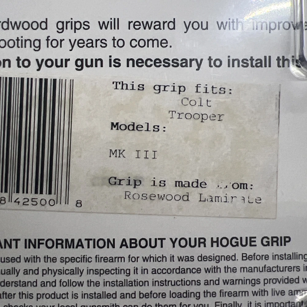 Hogue Exotic Hardwood Rosewood One Piece Grip Colt Troop MK III 42500 New old stock
