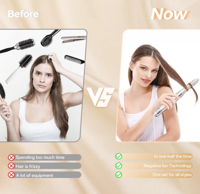 About this item 【Reduced Hair Damage Styling Tools】The HOJOCOJO Hair Dryer Brush redefines hair styling with its innovative hot air technology, offering a gentler alternative to traditional curling irons. Unlike conventional methods that apply concentrated heat to small hair sections, leading to thermal damage, our brush evenly distributes heat across a wider area, minimizing the chance of damage and split ends. Perfect for all hair types desiring a blend of style and care. 【140,000 RPM High-Speed Performance for Efficient Styling】The HOJOCOJO Hair Dryer Brush boasts an impressive 140,000 RPM, ensuring a powerful airflow that significantly reduces drying time in half. This high-speed feature allows for quick styling sessions, making it ideal for those with a busy schedule or for those who want to achieve salon-quality results at home without the lengthy process. 【6-in-1 Versatility for Multi-Functional Styling】This professional hot air brush set is designed to be a one-step solution for all your hair styling needs. With its 6-in-1 functionality, it can dry, curl, straighten, and comb your hair, providing a wide range of styling options. This versatility eliminates the need for multiple tools, making it a space-saving and cost-effective choice for every hair care routine. 【3 Temperature and Air Speed Settings】You can freely adjust the wind power from a gentle breeze to a strong gust to achieve the ideal hair drying effect. In the hot air mode, the HOJOCOJO hair comb can quickly remove moisture from the hair, shorten the drying time. After quickly setting the hair with hot air, use the cold air mode to lock the hairstyle. The cold wind can also help to contract the hair cuticles, reduce the hair's frizzy feeling, and make hairstyle smoother and shinier. 【Ultra-Lightweight Design for Effortless Styling】The HOJOCOJO Hair Dryer Brush is crafted with an ultra-lightweight design that significantly reduces hand fatigue, making it perfect for extended styling sessions. Its ergonomic balance ensures the tool feels comfortable in your hand, allowing for seamless manipulation and control. This thoughtful design element not only enhances the styling experience but also accommodates users with varying hand strengths, promoting a more enjoyable and less taxing hair care routine. 【Noise Reduction Technology】Experience the innovation of the HOJOCOJO Hair Dryer Brush, designed with advanced noise reduction technology that delivers a serene styling experience. This hot air brush is engineered to operate at a whisper-quiet level, ensuring that the only thing you hear is the soft whoosh of air and not disruptive noise. The ultra-silent operation is perfect for early mornings or late-night styling sessions, allowing you to get ready in peace without disturbing your household. Product description HOJOCOJO Hot Air Technology The HOJOCOJO hair blower brush features innovative hot air technology that revolutionizes hair styling, offering a gentler alternative to traditional curling irons. Traditional methods concentrate heat on a small section of hair, causing heat damage, but our blower brush is different. It evenly distributes heat over a larger area, minimizing the likelihood of damage and split ends. It's perfect for people with all hair types, as it shapes the hairstyle while also taking care of the hair 500 Million Negative Ions are Your Hair's Guardians Compared to traditional styling tools, it does not damage your hair with high temperatures, and can also release negative ions to neutralize static electricity and enhance shine. With a high-speed 140,000 RPM motor, it dries quickly without damaging the hair cuticles, leaving your hair smoother, more vibrant, and more stylish Product details Product Dimensions : 12.99 x 12.6 x 3.15 inches; 4.21 Pounds Date First Available : December 5, 2023 Manufacturer : Hojocojo