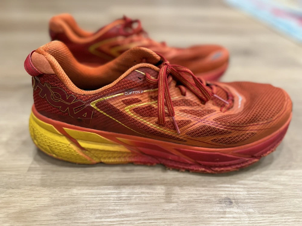 Step into comfort with the Hoka One One Clifton 3, a sneaker that marries performance with style. Designed for men who value both functionality and aesthetics, this athletic shoe features a vibrant red mesh upper and a durable rubber outsole suitable for a variety of activities, from running and jogging to cycling and even casual workwear. The Clifton 3's low-top design and standard-width lace-up closure ensure a snug, supportive fit, while the cushioned insole and fabric lining offer all-day comfort. Whether you're hitting the gym or the pavement, these versatile sneakers are ready to accompany you through all seasons.