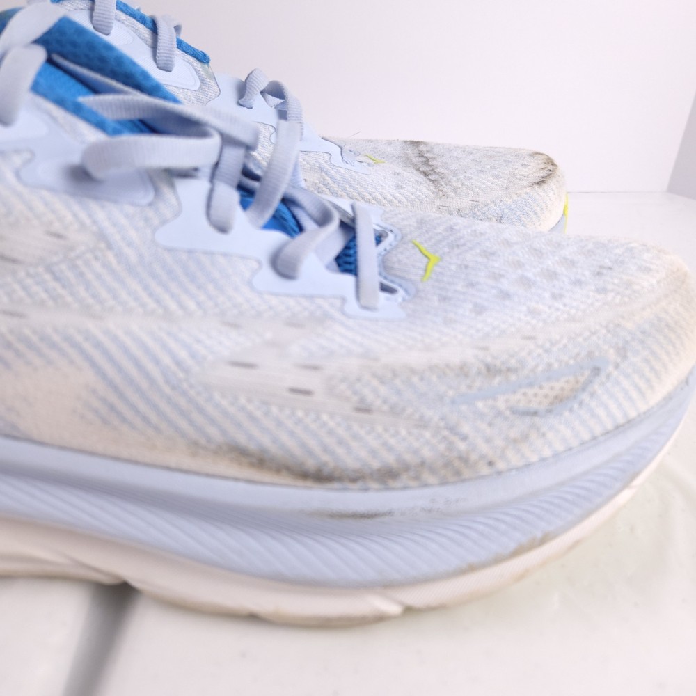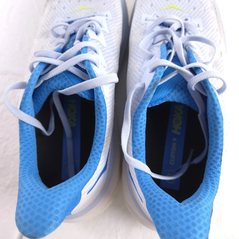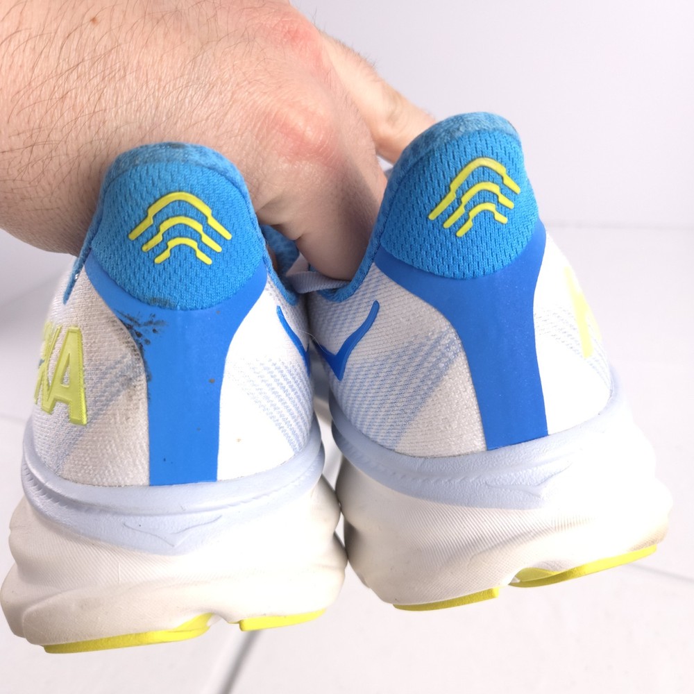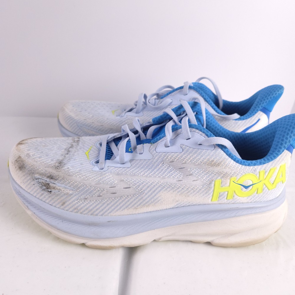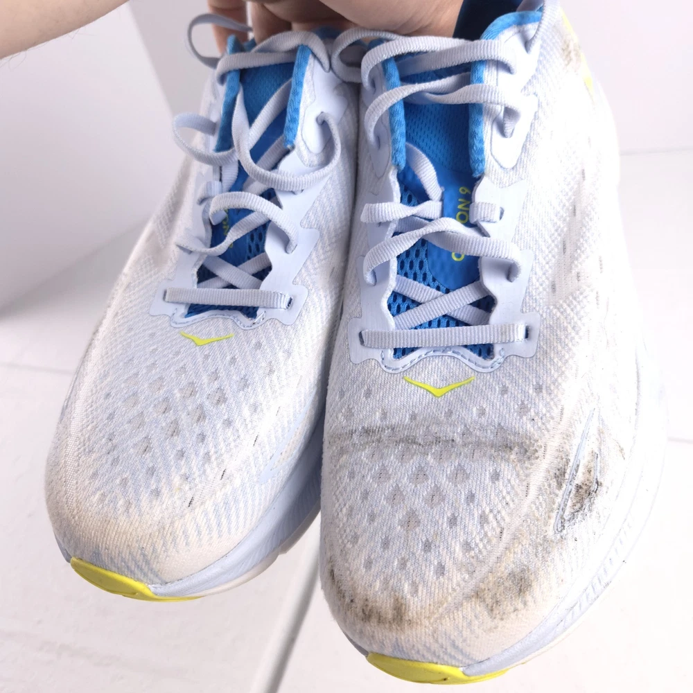 Please note: the shoes have heavy staining as seen in photos. I have not tried to get the stains out. The tread however on the bottoms is in excellent shape looks like the bottoms are new. So it can be a great pair for someone who doesnt care about the appearance of the shoes just wants a good pair to run in.