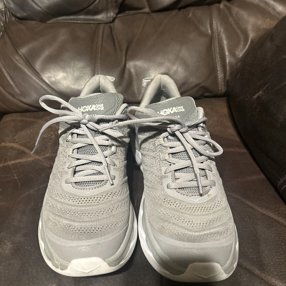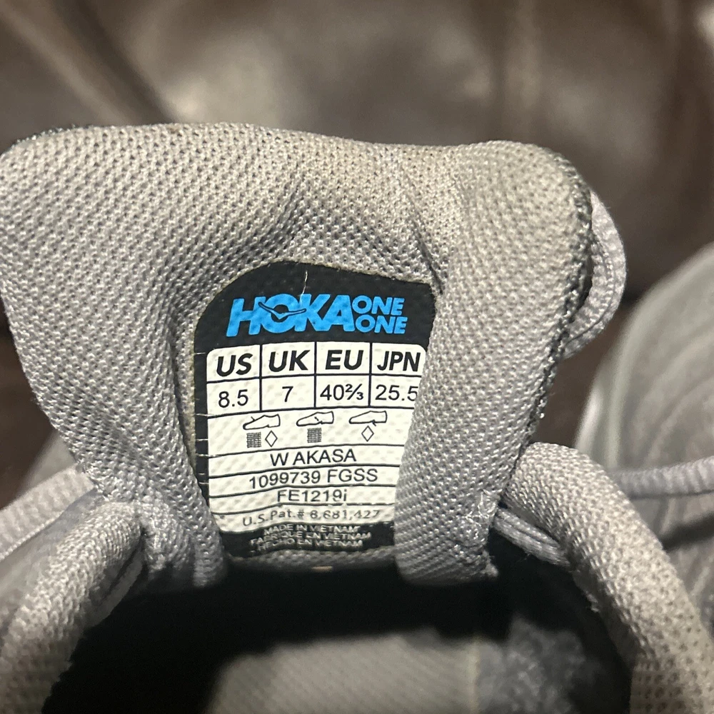 Overall great condition Hoka One One Akasa Gray Women’s size 8.5. Only some slight dirt, and some wear on the bottom of the outsole. Please refer to the pictures for details any questions feel free to ask thank you