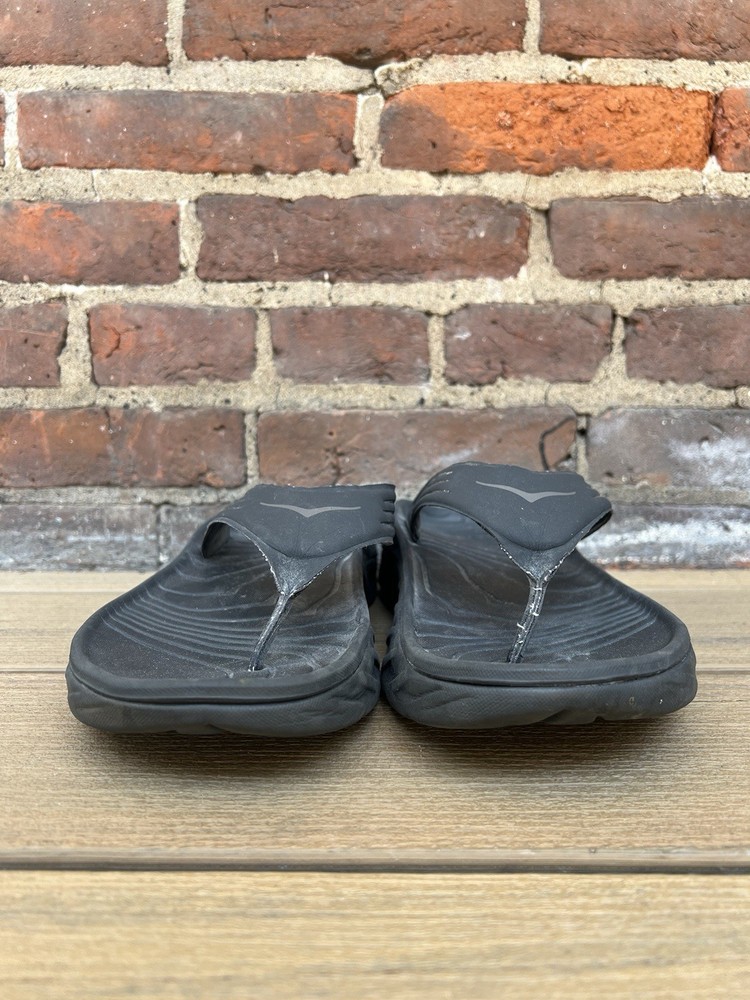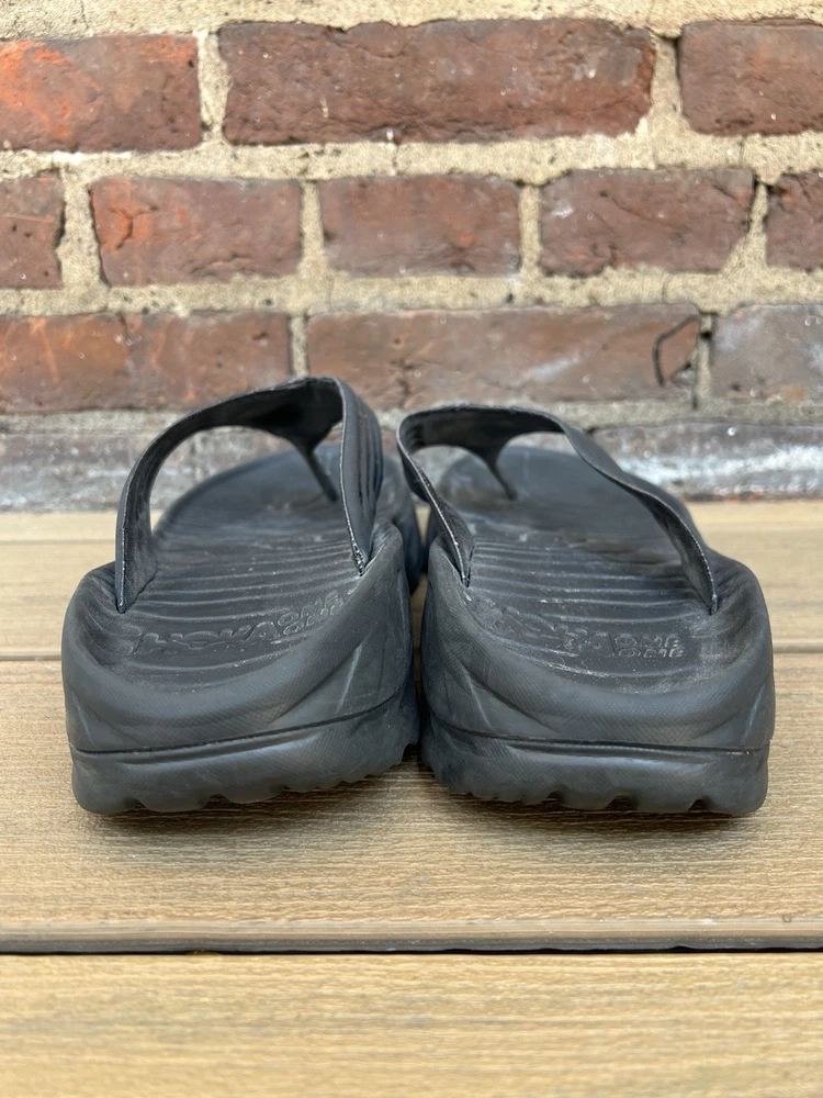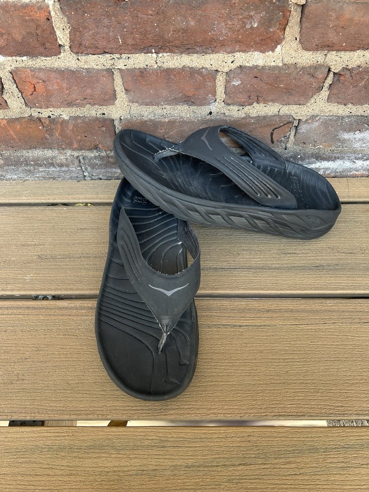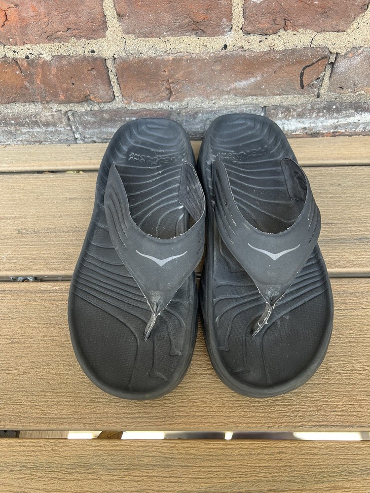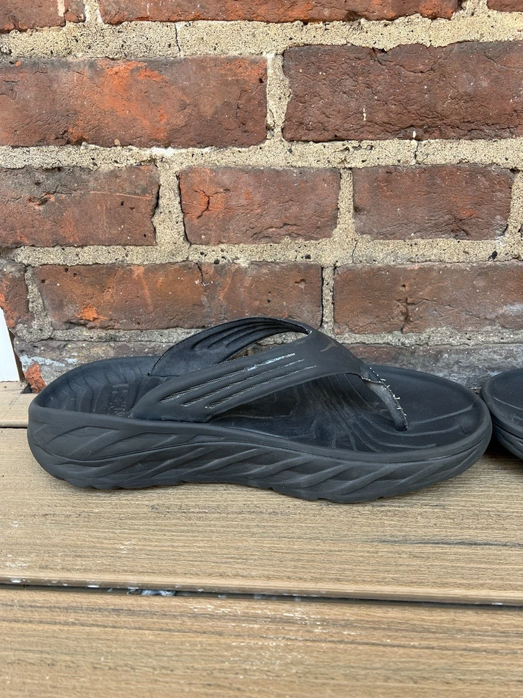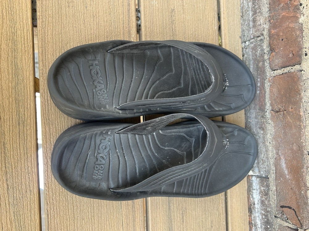 Love these Hoka recovery flip flops! Super comfortable right out of the box—the cushioning is amazing for tired feet. The rubber sole is sturdy but flexible, perfect for lounging or quick errands. Size 11 fits true to size, and the black design is sleek yet simple. Great for post-workout relaxation or everyday wear. Hoka quality shines through!