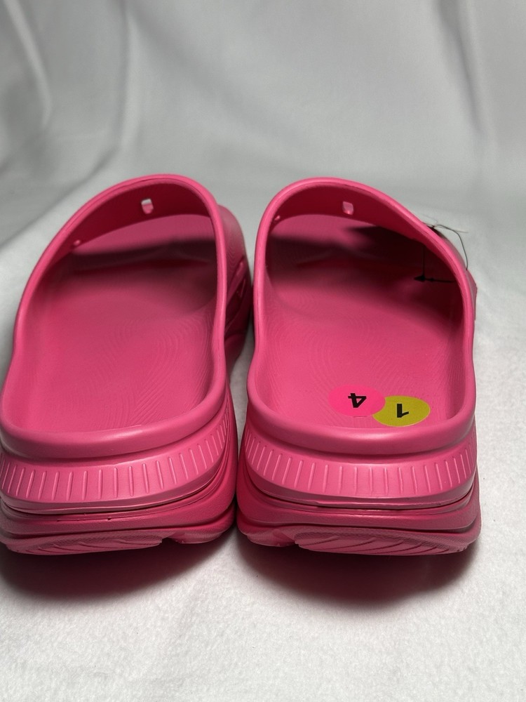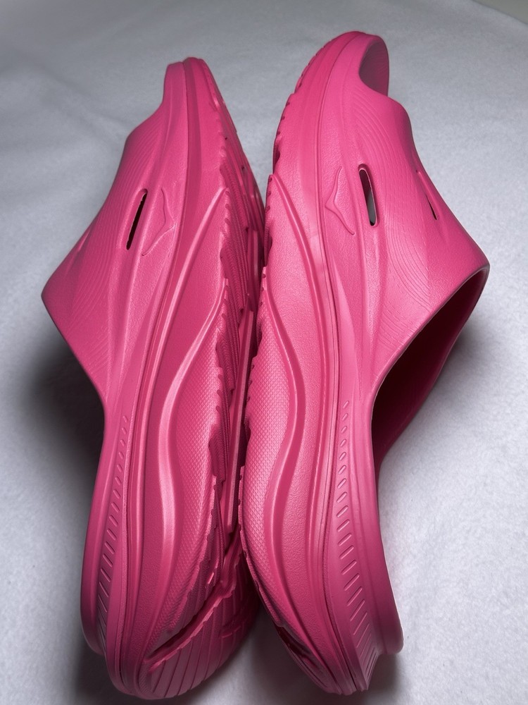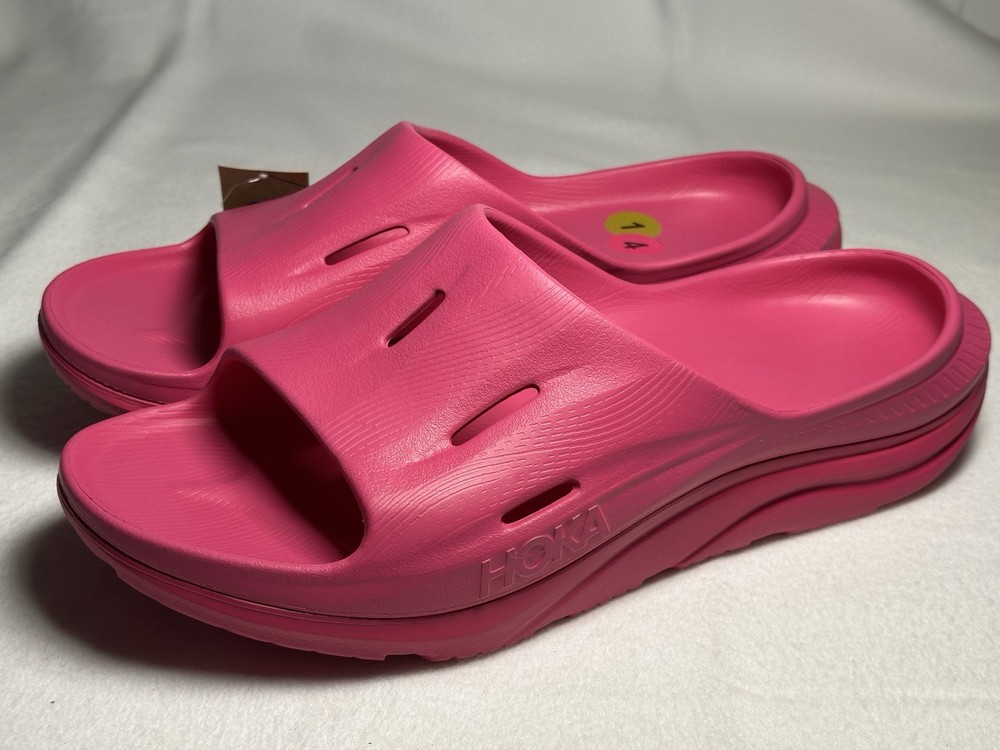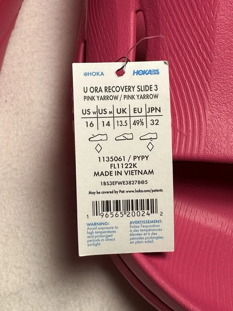 Step into next-level comfort with the HOKA Ora Recovery Slide 3 in the bold Pink Yarrow colorway. Engineered for both men and women, these slides provide exceptional cushioning and support to help you recover after a workout, a long day on your feet, or just for effortless everyday comfort. ✅ Features • Ultra-lightweight EVA foam for plush comfort • Meta-Rocker sole design promotes smooth transitions • Textured outsole for superior traction • Wide footbed for relaxed recovery fit • Perfect for post-run, post-gym, or casual wear 🧾 Details • Condition: New with tags • Color: Pink Yarrow / Pink Yarrow • Style Code: 1135061 / PYPY • UPC: 196565200242 • Gender: Unisex (Men 14 / Women 16) • UK Size: 13.5 EU Size: 49 ⅓ JPN: 32 • Made in Vietnam • Material: EVA Foam • Brand: HOKA ONE ONE • Model: Ora Recovery Slide 3 ❤️ Why You’ll Love Them These slides are designed to cradle your feet in soft, supportive comfort — ideal for athletes, nurses, or anyone seeking all-day cushioning.