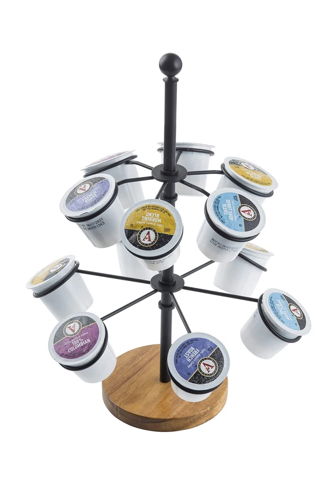 Cone Holder, Black Coated Steel & Acacia, Holds 12 Cones/K-Cups, 10 x 10 x 13.5" Cone Holder, Black Coated Steel & Acacia, Holds 12 Cones/K-Cups, 10 x 10 x 13.5" 's new Rotating Cone Holder is ideal for serving food in style The cone holder also serves as a k-cup storage to dress up your coffee station. Holds 12 cones/cups. Black coated steel with wood base fits all décor styles. Hand washing recommended. 's Pinewood Disposable Serving Cones are the perfect add-on for using with the cone holder.