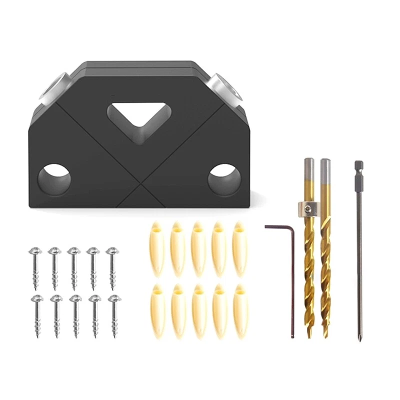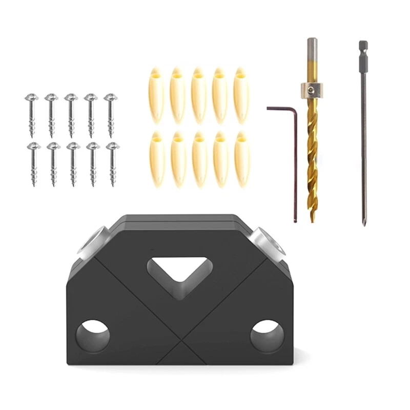 Features: Achieve precise drilling with the screw jig, ensuring accurate hole alignment and stability for woodworking projects. This multifunctional drilling aid is durable and resistant to damage, providing long lasting durability. Suitable for both diy enthusiasts and professional woodworkers, this versatile tool is perfect for anyone looking to improve their woodworking skills. Whether you're working on home renovations or projects, the drill locator can be used for various applications, such as building bookshelves, wardrobes, and cabinets. Experience the convenience and accuracy of drilling with ease, even if you're a beginner. This tool is designed to simplify your woodworking tasks and deliver excellent results. Specifications: Material:Aluminium Alloy Color:Black Size:As Picture Shown Model Number: Pocket Hole Jig Application: Working Tool DIY Supplies: Woodworking Type: Combination, Drills Drilling 45 degree Surface Anodized Application: Use pocket-hole plugs to create invisible joint Package Includes: Set Pocket Hole Jig note: ①.Please allow 1-2cm errors due to manual measurement, make sure that you do not mind before you order. ②.Due to the difference between different monitors, the picture may not reflect the actual color of the item. Thanks for your understandings.