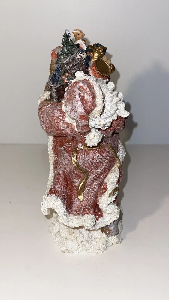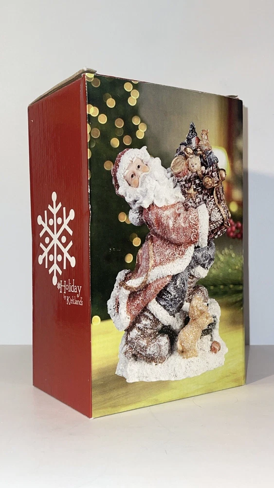 Holiday By Kirklands Santa With Gift Bag Figure Santa Figurine carrying gift bag with dog Note item does have a glitter finish, there is some slight glitter transfer when handling the product A preowned decoration, there is a noticeable green discoloring on the dog other than that its in great shape Comes in the original box, I have the figure wrapped in bubble wrap, not the original wrapping, however is it wrapped well Please ask for any extra pictures, thank you!