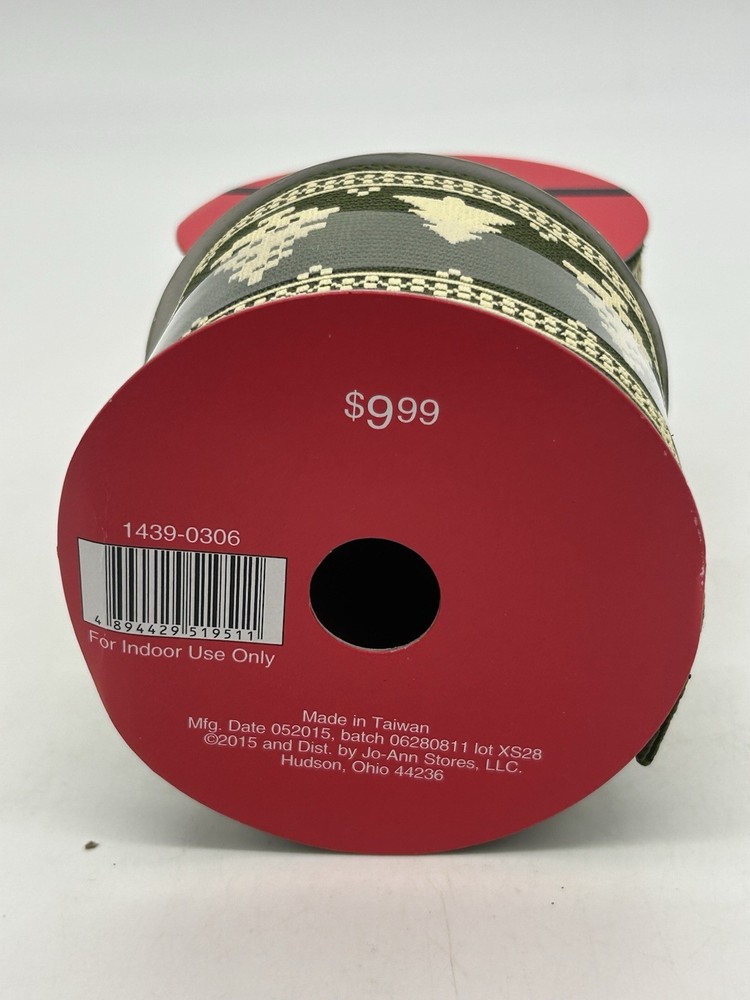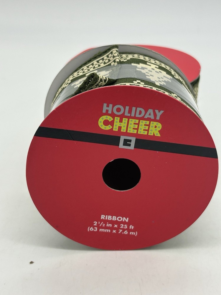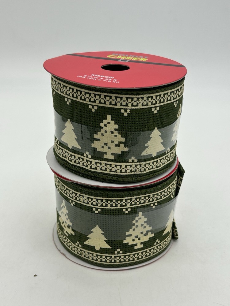 Holiday Cheer (Jo-Ann's) 2 1/2" x 25' ea Holiday Ribbon Green w/ Trees (2 Rolls)
