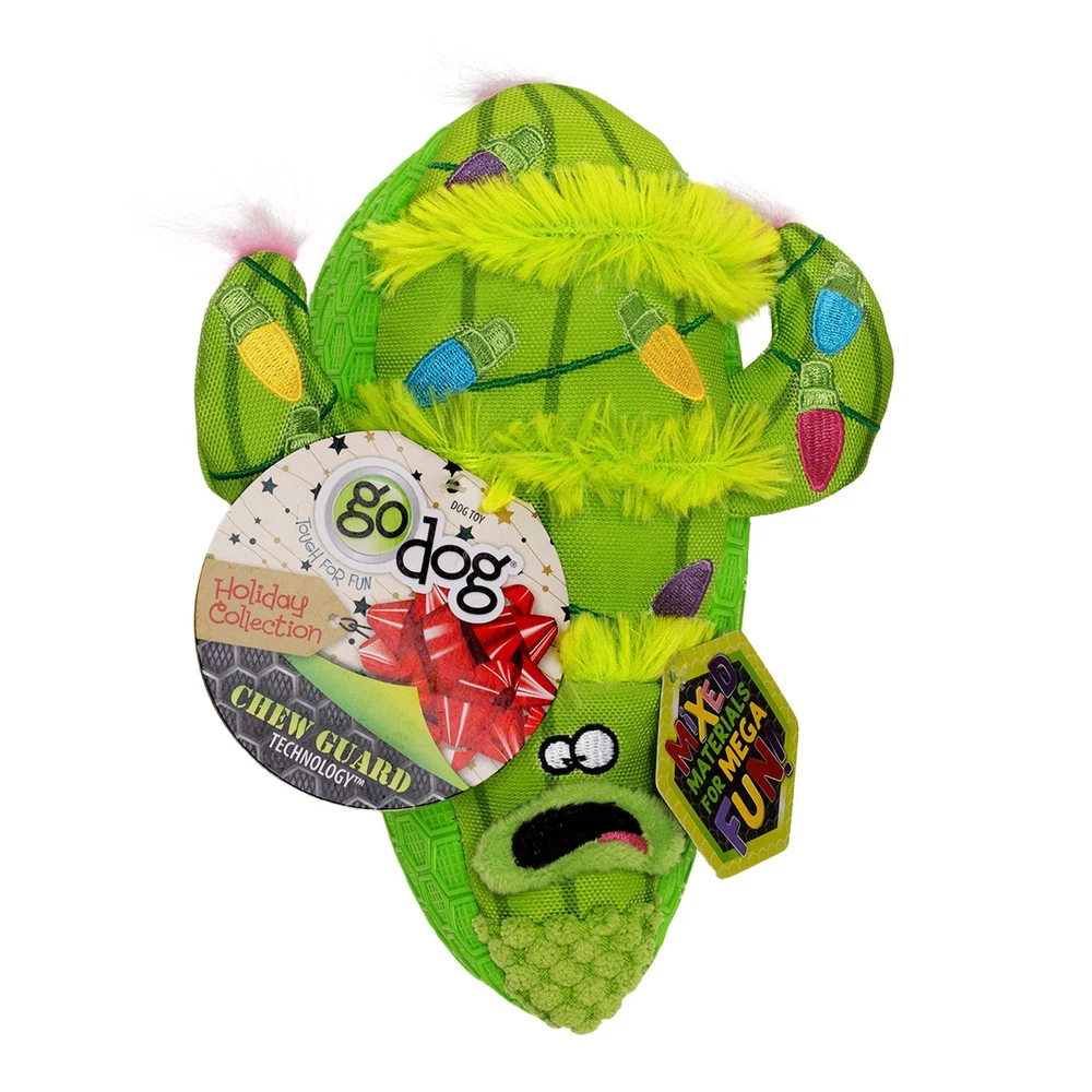 Holiday Collection Mixed Materials TPE Plush Holiday Cactus Dog Toy is mega fun for your adorable pup! Gift your dog with different materials and textures to joyfully chew. Holiday Cactus has soft yet durable different textured plush and durable canvas fused with flexible textured TPE. For added toughness, Mixed Materials toys are made with Chew Guard Technology, making this super plush merrily festooned Holiday Cactus perfectly suited for tough play, carrying, and playing tug. It will be your dog’s favorite way past the holidays. Mixed Material toys offer your dog different materials and textures to chew, ensuring they are entertained. At we believe that a bond with your pet is everlasting, and we want the toys you play with your pet to be just as strong. Our toys are fun-loving, bright, and colorful for dogs of all breeds and sizes. gives pet parents the best of all worlds: innovative products, stylish designs, and exceptional value with a variety of toys and beds to meet a dog's needs for play, retreat, rest, and fun! products are designed to meet safety standards. DISCLAIMER: Our toys are tougher than standard plush toys, but NOT indestructible; some dogs can destroy Chew Guard toys depending on their play and chew patterns. SOFT & PLUSH: Celebrate the holidays with 's Holiday Collection TPE plush toys; these dog toys feature reinforced seams and chew-resistant lining, along with durable TPE fused with the soft plush for fun, long-lasting play MIXED MATERIALS: The mix of TPE and plush offers a unique and fun play experience for dogs; the textured soft hardness of the TPE makes the toy a fantastic choice for chewers and teething pups, while the soft plush material helps promote cuddle time BUILT-IN SQUEAKER: The dog toy is designed with a built-in squeaker to entice and excite your pup, satisfying their hunting instincts and chewing behavior to keep their interest during play ENRICHMENT: The immediate auditory feedback of the plush toy excites dogs and encourages play; it's designed to provide enrichment and stimulation, catering to your dog's natural and instinctual behavior to keep them busy and entertained PRODUCT DETAILS: Holiday Cactus; Size, 8.26" x 7.08" x 3.14" DESIGNED TO LAST LONGER: Our soft plush dog toys are made with Chew Guard Technology, which adds a tough, heavy-duty, chew-resistant lining to our soft plush toys, making them a little more durable than your average dog toy DISCLAIMER: No toy is indestructible, and some dogs can destroy Chew Guard toys depending on their play and chew patterns; We offer a -time within 30 days of purchase. (may not be the same as the toy originally purchased)