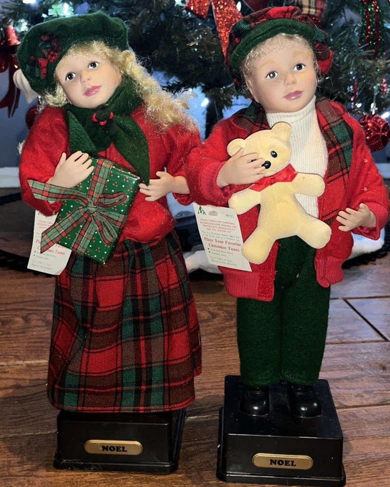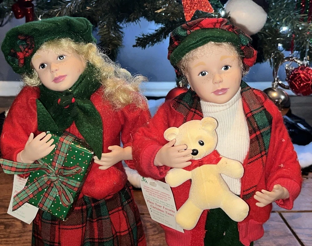 Holiday Creations 16" Boy And Girl Animated Christmas Decorations 1990