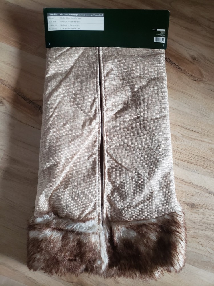 New At Home brown/beige tree skirt 48" diameter faux fur trim velcro closure smoke & pet free home COMBINED SHIPPING Please check out my other items. I will combine shipping for full stated shipping price for MOST expensive shipping priced item and half for each additional item. THANKS FOR LOOKING AND HAPPY SHOPPING!!!!