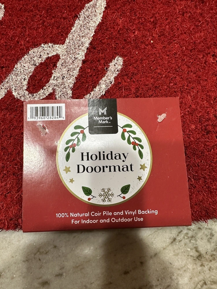 Make your holiday decor inviting with this Members Mark Holiday Dormant Indoor Mat. Crafted with 100% natural coir pile and vinyl backing, this floor mat is durable and can withstand high traffic. The mat features a festive holiday theme that will add charm to your home. The vinyl backing ensures that the mat stays in place, preventing slips and falls. This product is perfect for adding a cozy touch to your home during the holidays. ShipN24Hours.