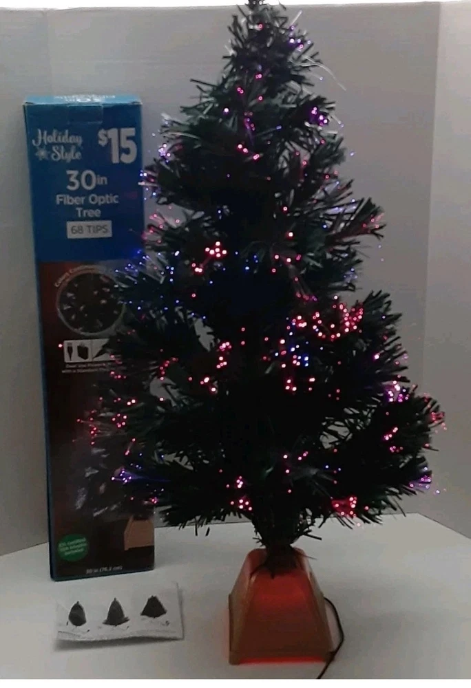 The Holiday Style 30" Fiber Optic Christmas Tree is a festive artificial tree that changes color using optical fiber technology. This green tree stands at 30 inches tall and comes with a USB LED light for illumination. Perfect for the holiday season, this Christmas tree from Holiday Style is sure to bring a touch of seasonal cheer to your home decor. Made in China, this one-piece tree is a unique and eye-catching addition to your holiday celebrations. Perfect for table top.