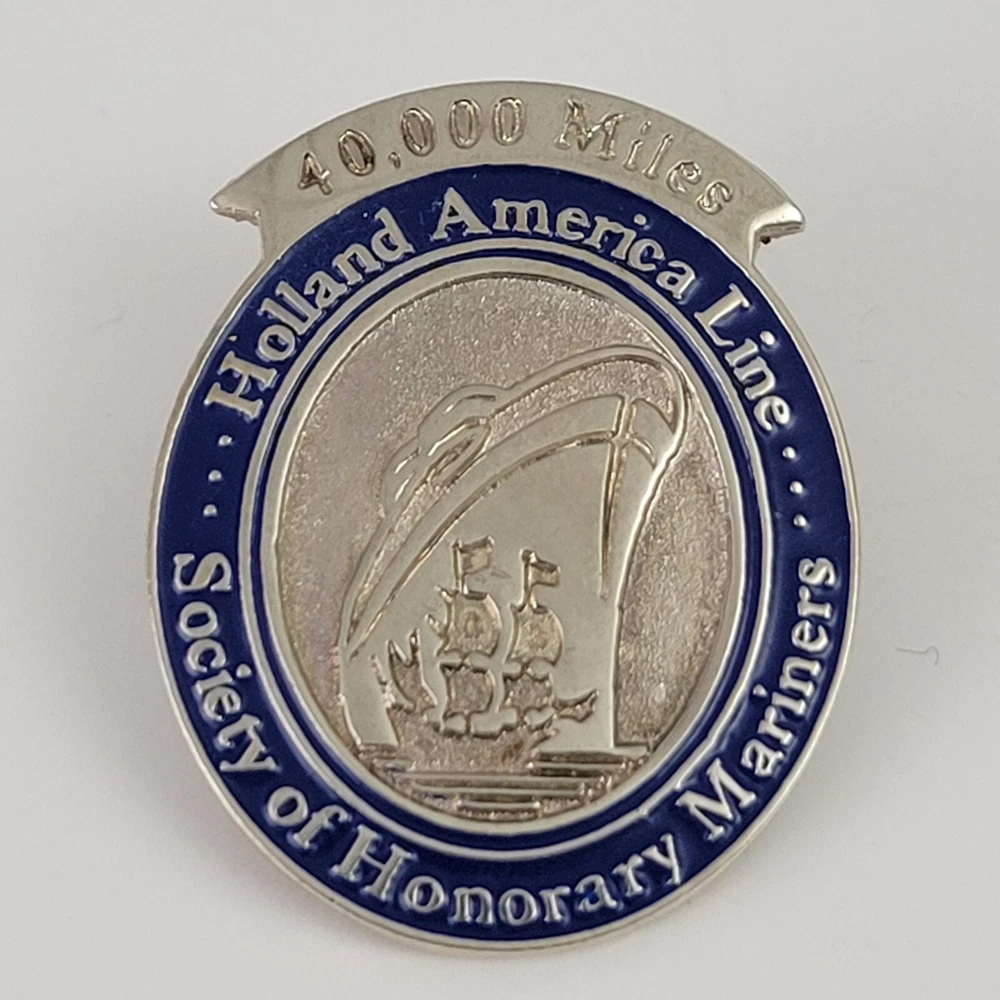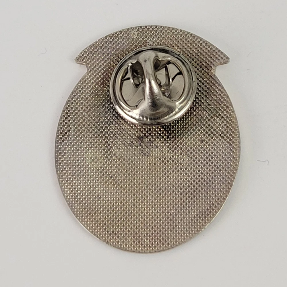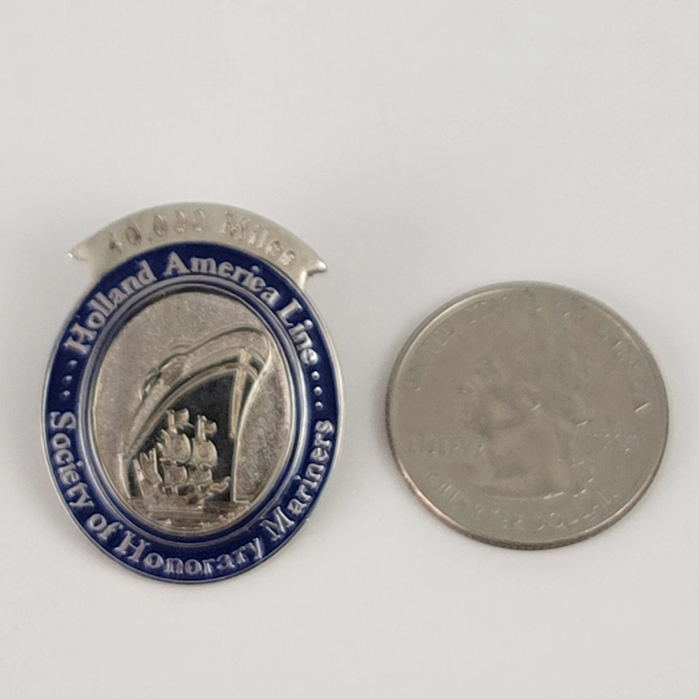 This pin measures 1" x 1.25". There are no scratches but there is a slight bit of tarnish in the 40,0 at the top. The back also shows tarnish. Please take a look at the pictures for details. (Quarter for scale)