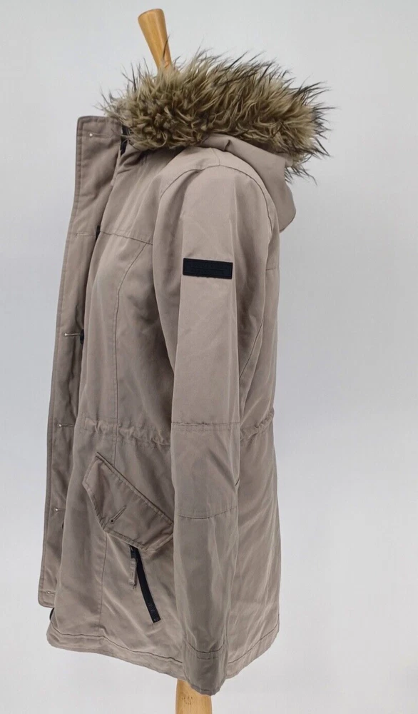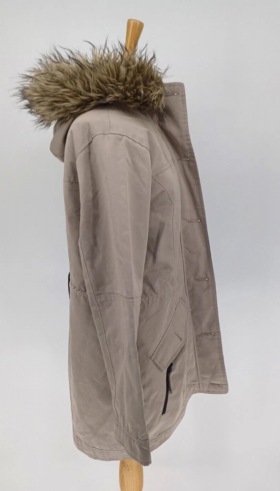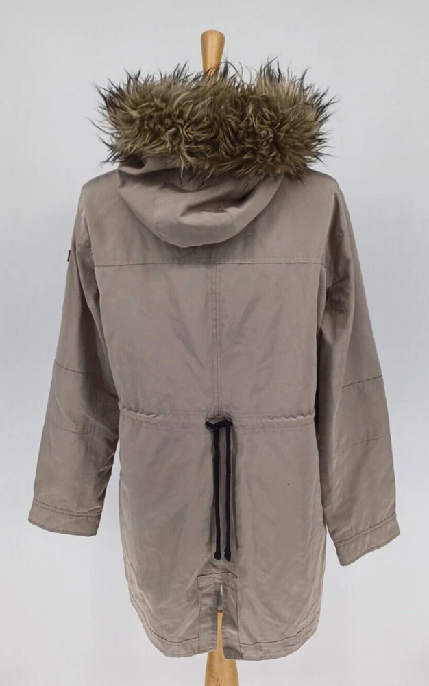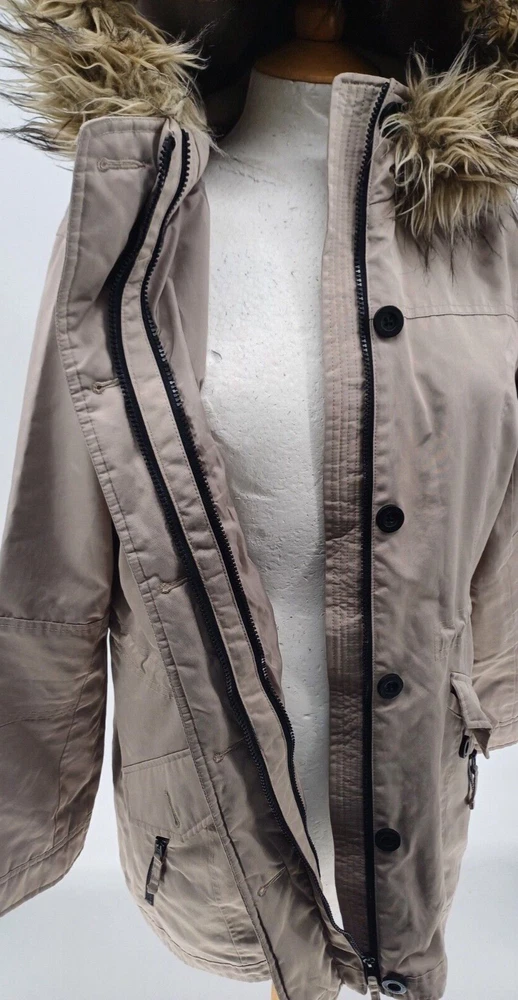 Hollister California Taupe Lightweight Parka Jacket Women's Size Large. A taupe coloured lightweight parka coat with a faux fur trim hood. It’s in excellent condition however there is some very light wear. Measurements: Chest: 44 inch Pit to cuff: 19.5 inch Shoulder to shoulder: 17.5 inch Length: 32.5 inch