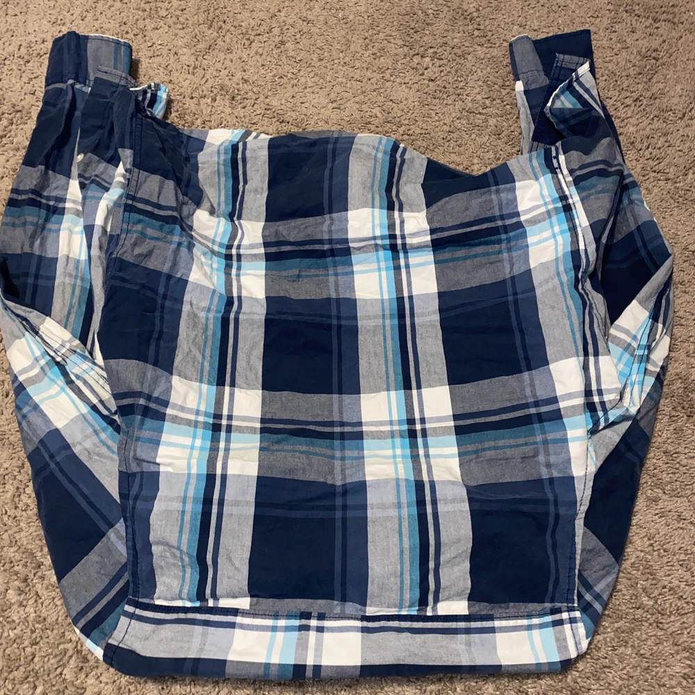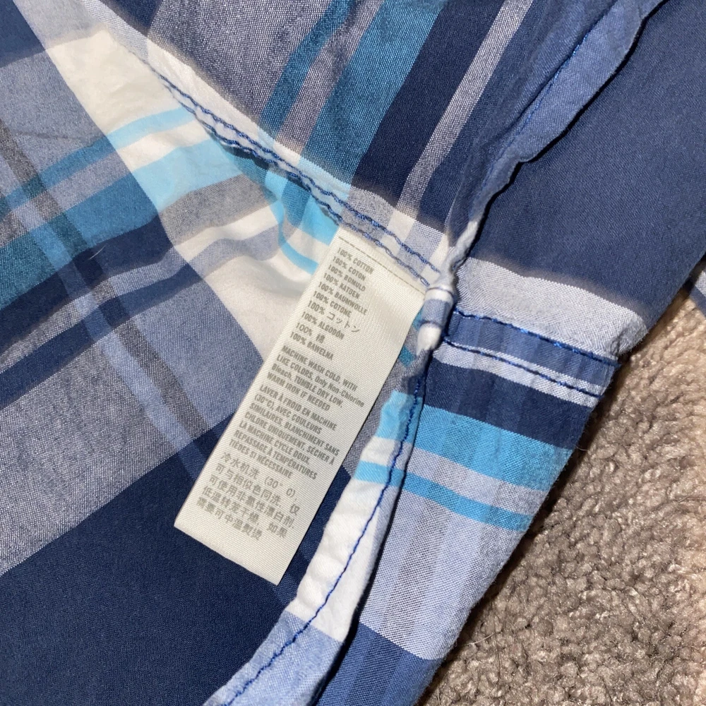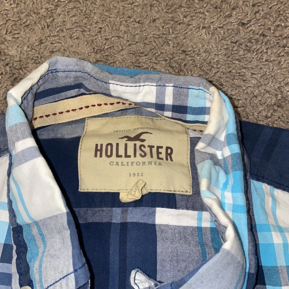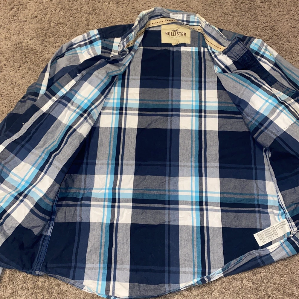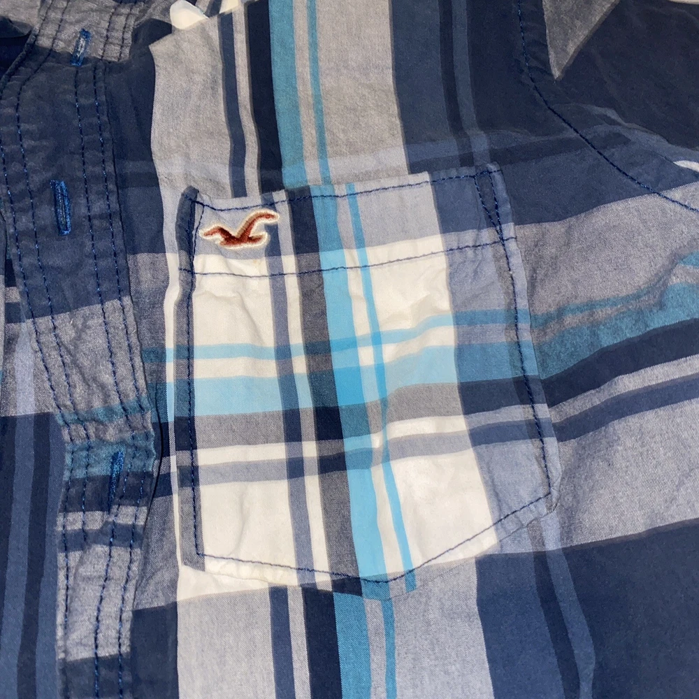 Occasion: Business, Casual, Formal, Party/Cocktail, Travel, Wedding, Workwear Features: All Seasons, Pockets Neckline: Collared Country/Region of Manufacture: Unknown Sleeve Length: Long Sleeve Pattern: Plaid Graphic Print: No Fit: Regular Collar Style: Button-Down Department: Men Type: Button-Up Season: Fall, Spring, Summer, Winter Personalize: No Brand: Hollister Handmade: No Size: M Accents: Button, Embroidered, Logo Closure: Button Theme: Outdoor Color: Blue Size Type: Regular