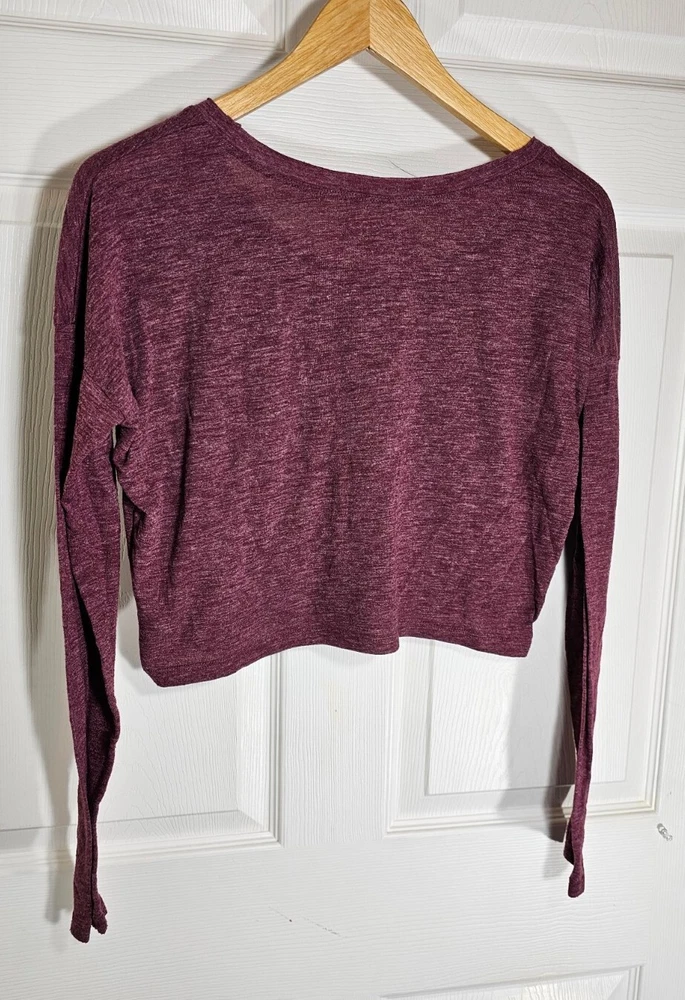 Beautiful Hollister crop top long sleeve. Excellent pre-owned condition, no signs of wear, stains, snags, etc. The pocket is a little saggy. very soft and comfortable material. I love the heathered maroon and oversized fit! Thank you for your interest, I am available anytime to answer questions about this item! Measurements Are: (L) 16.5in. Shoulder to hem. (W) 22.5in. Pit to pit. (Sleeves) 20in.