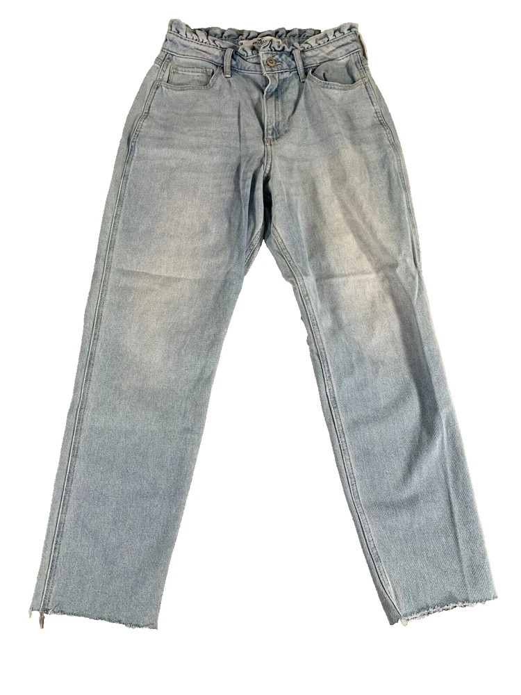 eBay Listing Template Our Listings Add to Favorites Feedback About Us Contact Us Hollister mom jeans! 👖✨ These light wash beauties feature: • Curvy fit for that perfect hourglass silhouette • High-rise waist with chic paperbag detail • Frayed hem for an edgy, lived-in look • Size 26x27 - perfect for petite fashionistas! • Gently used condition - ready for your wardrobe! Elevate your denim game and turn heads wherever you go! 🔥 Pair with a crop top for brunch or dress up for a night out. Limited stock - don't miss out! Browse our store for more fab finds! Subscribe now for exclusive deals and EPIC subscriber-only offers. Share this listing with your fashion-forward friends! 💃 SKU: #4500 Please check out my other items for sale! Shop by Categories Women's Clothing Women's Shoes Handbags Jewelry Men's Clothing Men's Shoes Hats Watches Useful Links Our Listings Add to Favorites Feedback About Us Contact Us Store Newsletter Add Store to your Favorites and receive email newsletters about new items and special promotions! Subscribe Now
