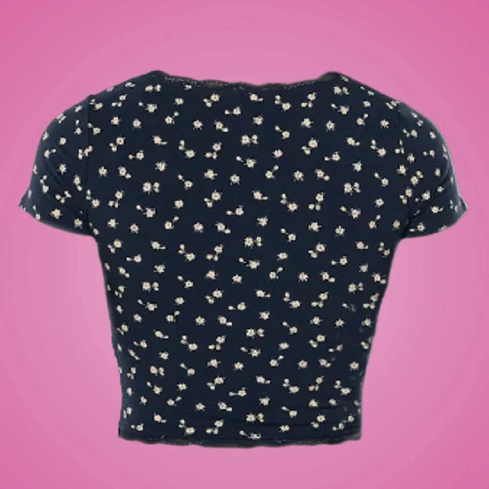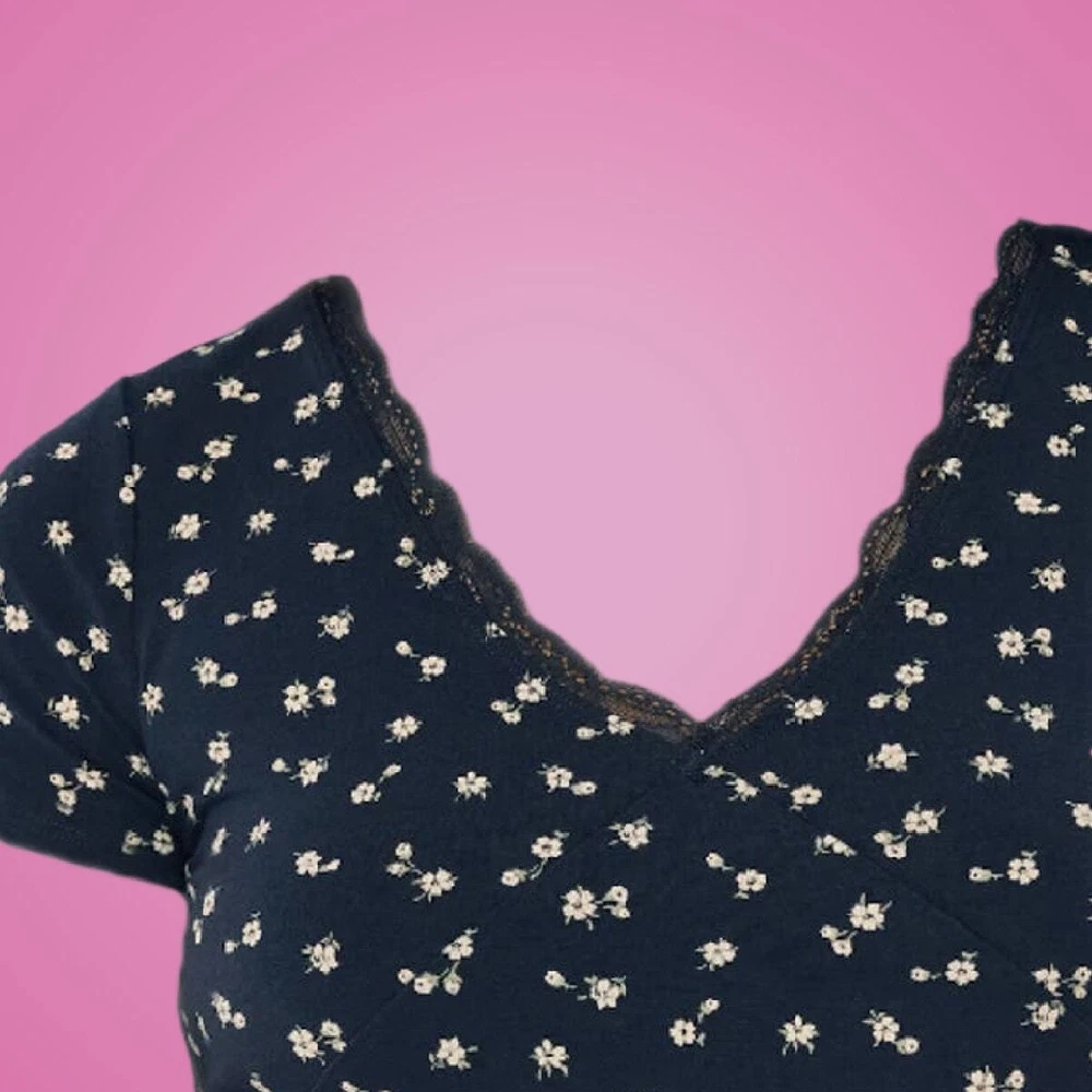 Hollister Dark Blue Lace Trim V-neck Baby Tee Size Large. New without tags. Will ship fast and with care!