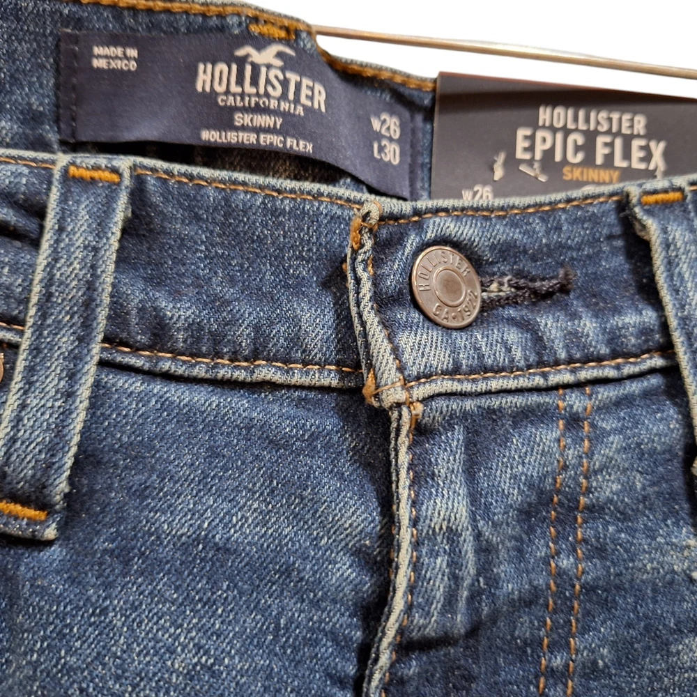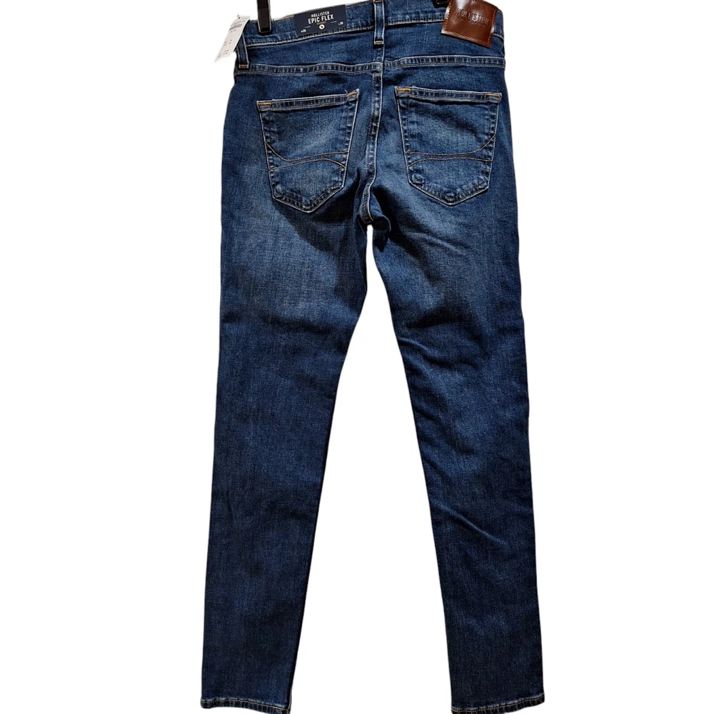 Hollister Epic Flex Medium Wash Skinny Jeans Men's Size 26" x 30" NEW Brand new with tags from a smoke-free home. Men's Size 26" x 30". Approximate flat lay measurements: Waist: 15.75", Inseam: 30", Rise: 10", Leg opening: 6.5".