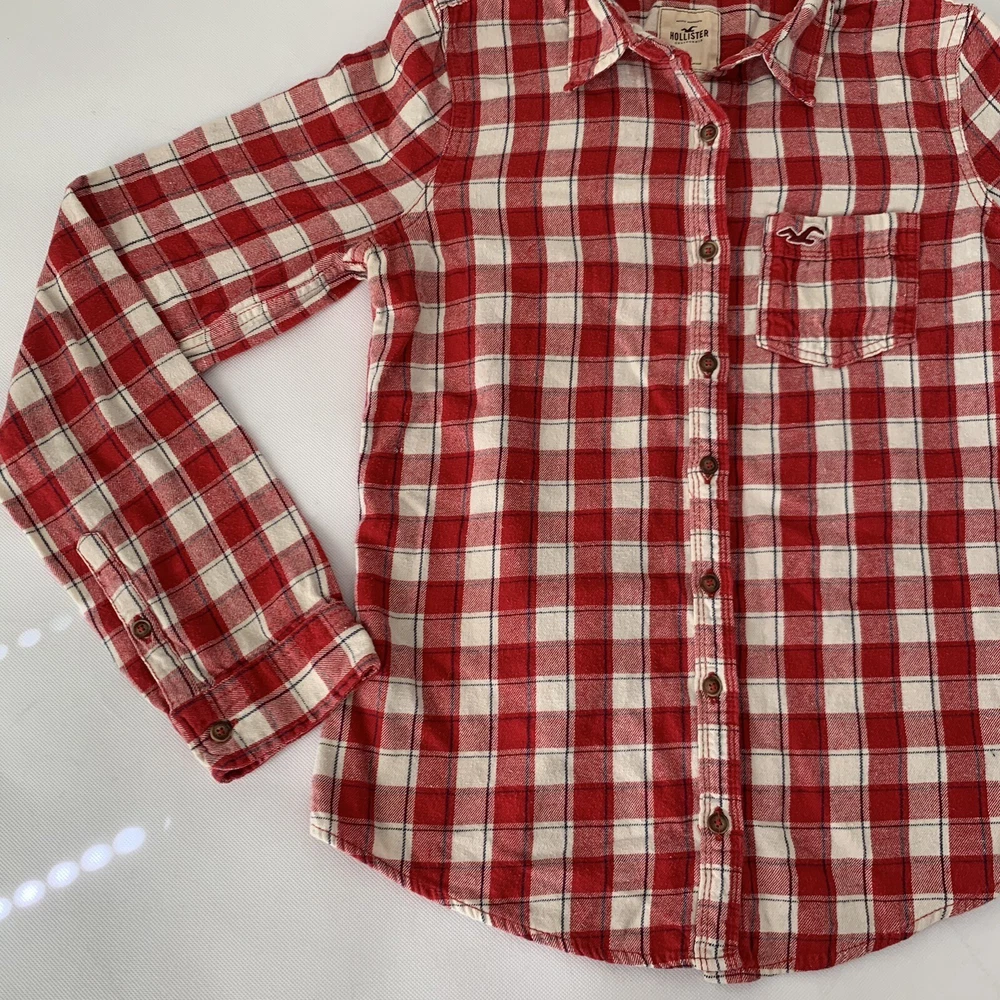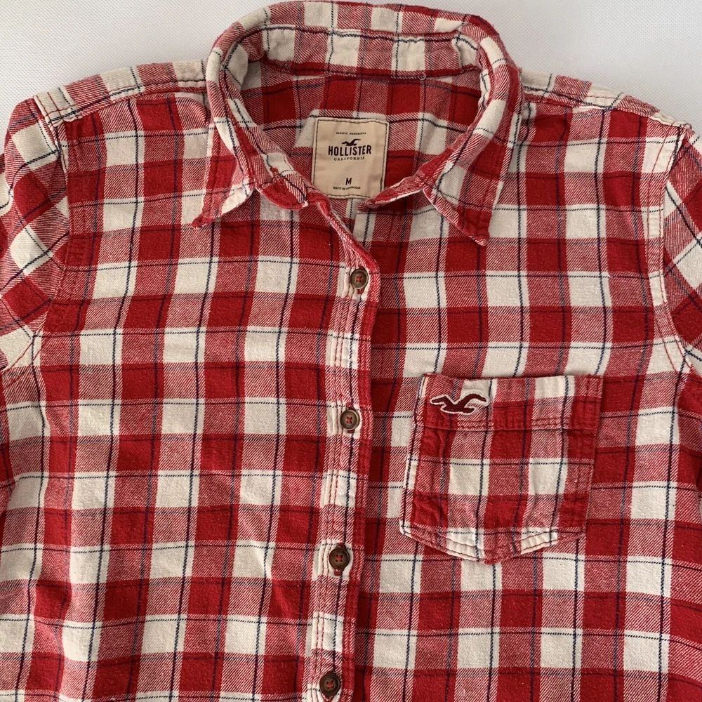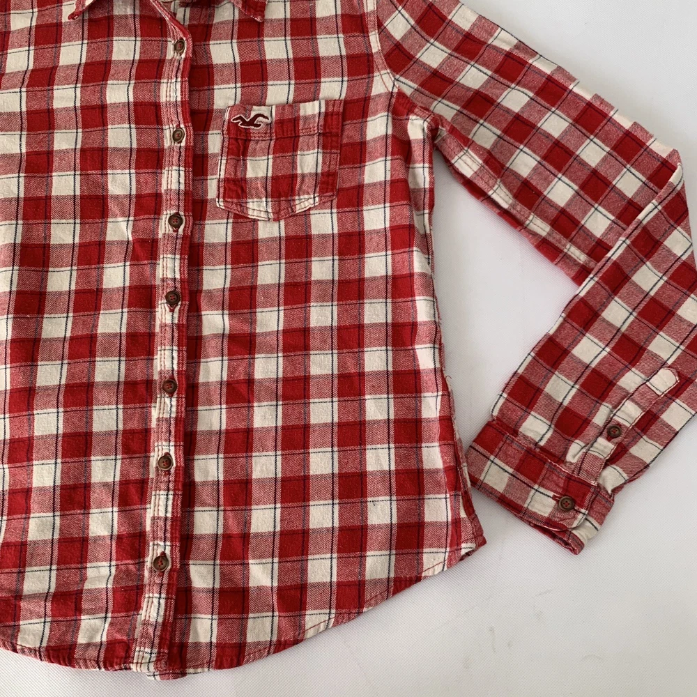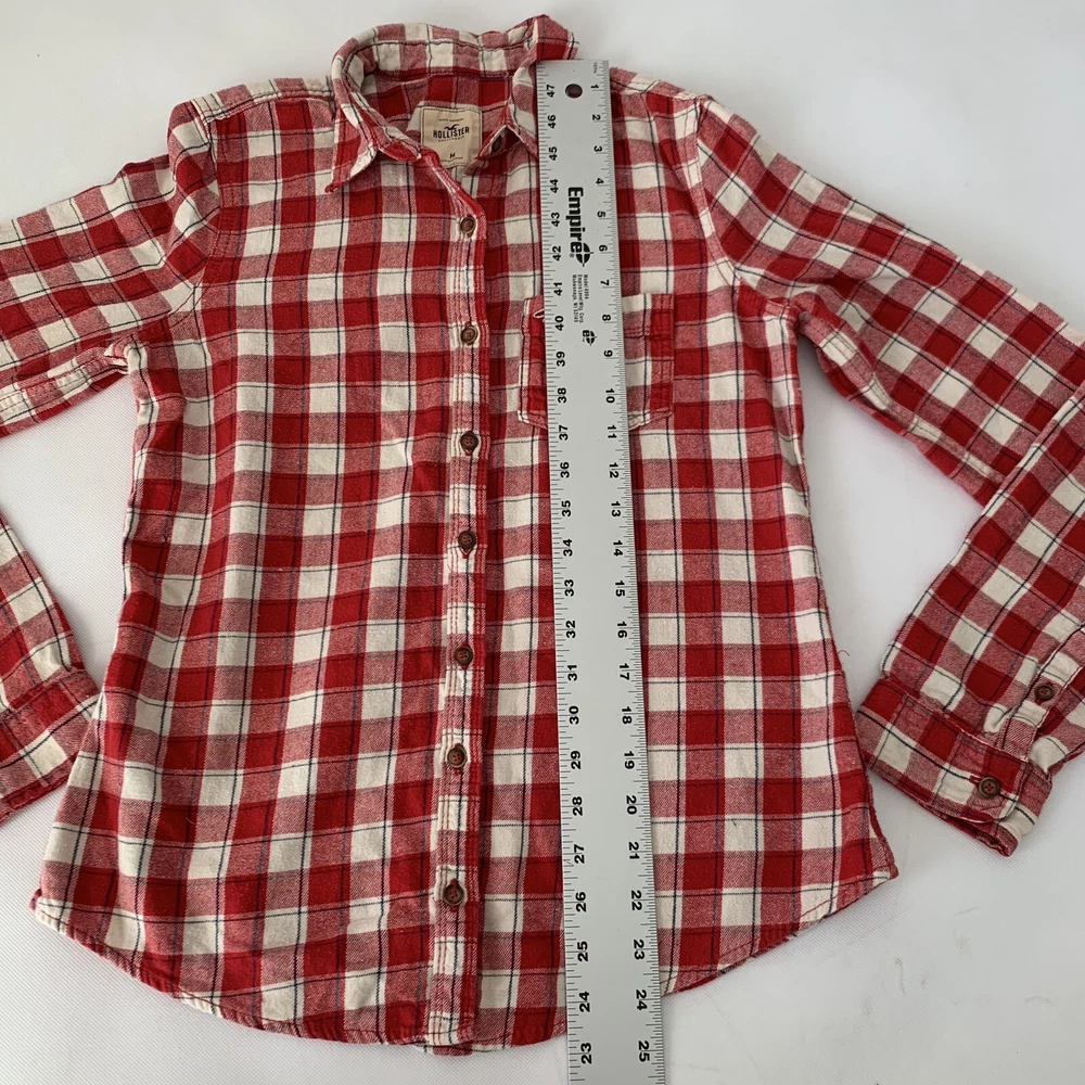 Hollister Flannel Button Down Shirt Womens Medium M Red Cream Plaid Button Down Long Sleeve Measurements: Please see photos above for all measurements for proper fit. We do the best we can with measurements. Compare your personal measurements or existing favorite clothing to the garment's measurements in the photos to make sure this is the garment for you. Great preowned condition. Please expect normal wear, this is a preowned item. View all photos for proper expectation of condition. This items ships within 1-3 business days Offers welcome. Tags: everyday fashion stylish trendy classic spring summer fall winter seasons apparel comfy comfortable easy to wear classy casual favorite country cowgirl cowboy farm leaves autumn