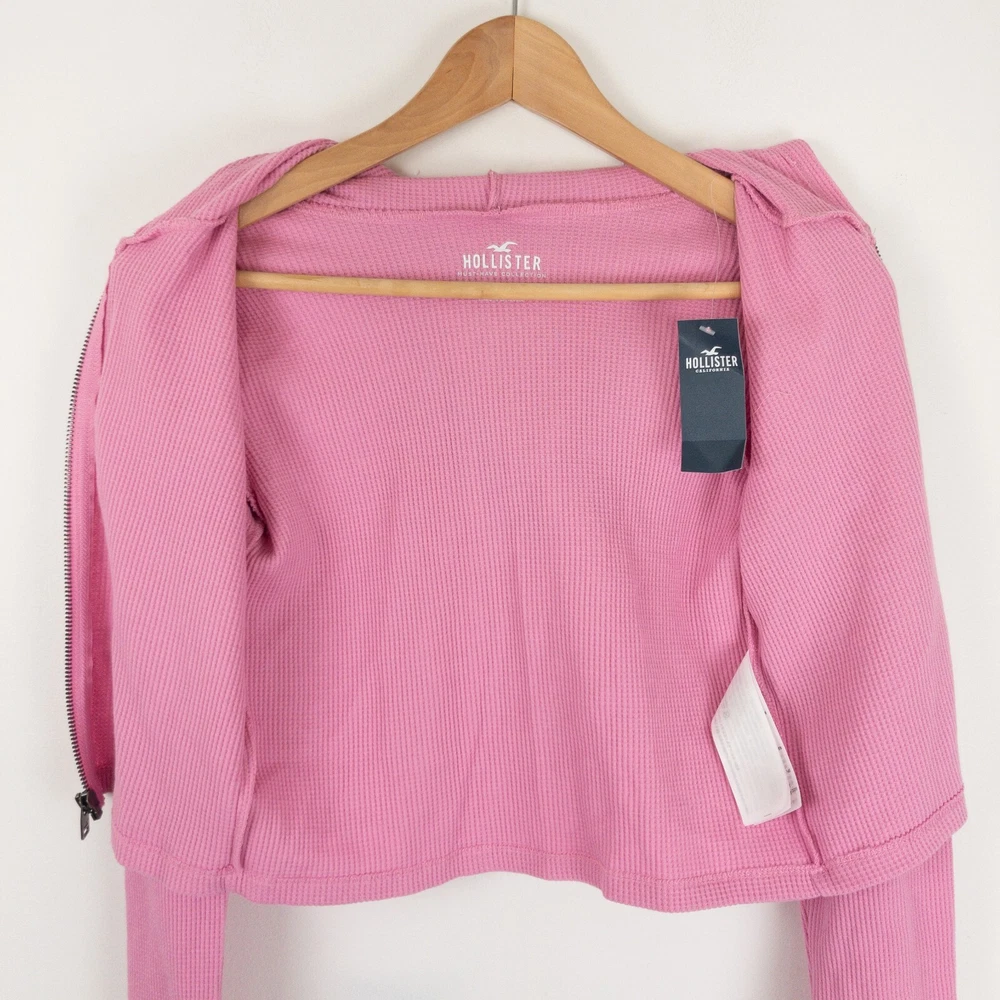 Size: 2XS Size Type: Regular Personalize: No Closure: Zip Brand: Hollister Chest Size: 30 Style: Full Zip MPN: 651893615 Color: Pink Character: None Type: Hoodie Performance/Activity: Driving, Running & Jogging, School, Walking, College Material: Cotton, Cotton Blend, Polyester, Polyester Blend Personalization Instructions: Thanks for stopping by! Country/Region of Manufacture: Cambodia Department: Women Season: Fall, Spring, Winter Occasion: Activewear, Casual Vintage: No Neckline: Crew Neck Sleeve Length: Long Sleeve Accents: Logo, Zipper Pattern: Solid Character Family: None Sleeve Type: Regular Sleeve Theme: Christmas, Classic, Logo, Preppy, Barbie, Gift Fit: Regular Garment Care: Machine Washable Features: Hooded, Pockets, Cropped Fabric Type: Knit