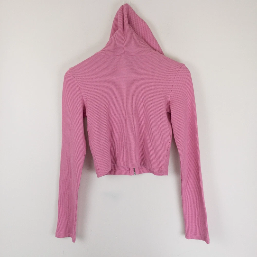 Hollister Hoodie Womens XXS Pink Cropped Full Zip Waffle Knit Cotton Blend New