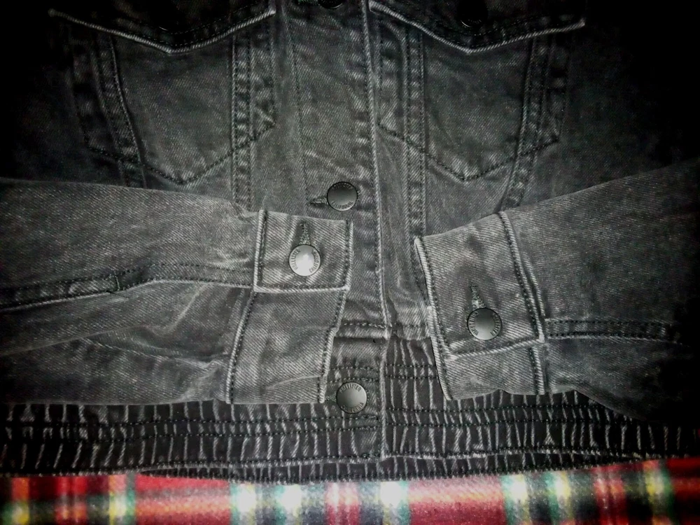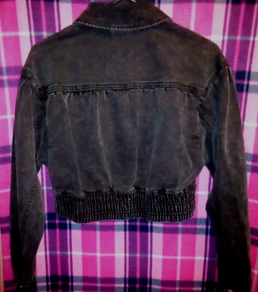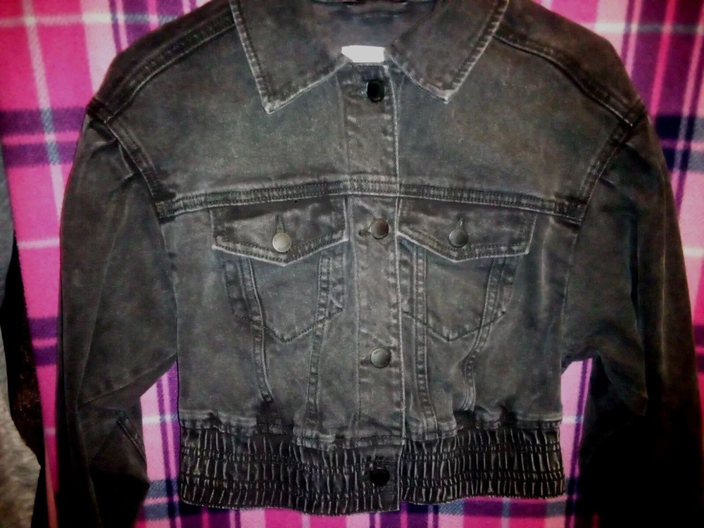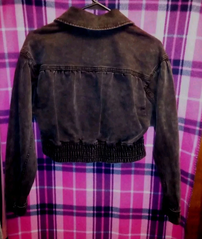 Hollister Jean Jacket Juniors XSmall Black Charcoal Denim Cropped Retro Pockets