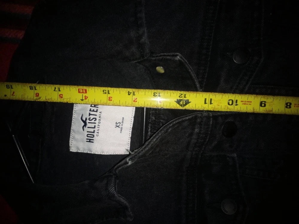This Hollister denim jacket is perfect for any occasion. With a cropped design and stretchy waist, it's comfortable and stylish. The button closure and collared neckline add a classic touch, while the long sleeves and lightweight fabric make it perfect for spring. It features a solid black color, denim material, and a Hollister logo accent. The jacket has pockets and is machine washable, making it practical and easy to care for. It's available in juniors size X-small and is a regular fit. See below for more details on this denim jacket, perfect for any hipster or 90s themed outfit.