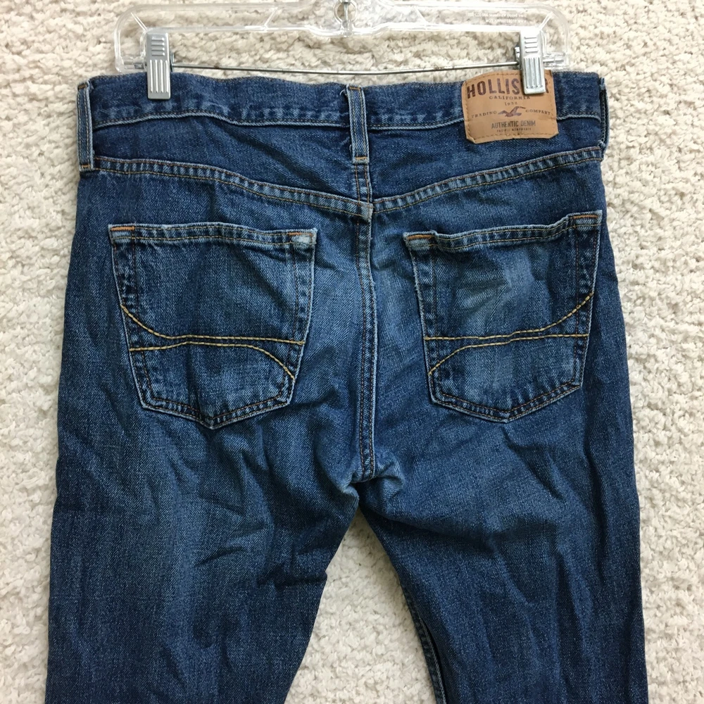 Theme: Preppy, USA Brand: Hollister Rise: Mid (10-12 in) Style: Bootcut Season: Fall, Spring, Summer, Winter Garment Care: Machine Washable Closure: Button, Zip Country/Region of Manufacture: Mexico Material: Cotton, Cotton Blend, Polyester Size Type: Regular Department: Men Size: 31 Fit: Regular Fabric Wash: Medium Accents: Button, Logo Pattern: Solid gtin13: Does Not Apply Fabric Type: Denim UPC: Does Not Apply Inseam: 30 in Features: Comfort, Easy Care, Pockets Type: Jeans Pocket Type: 5-Pocket Design Waist Size: 31 in Color: Blue