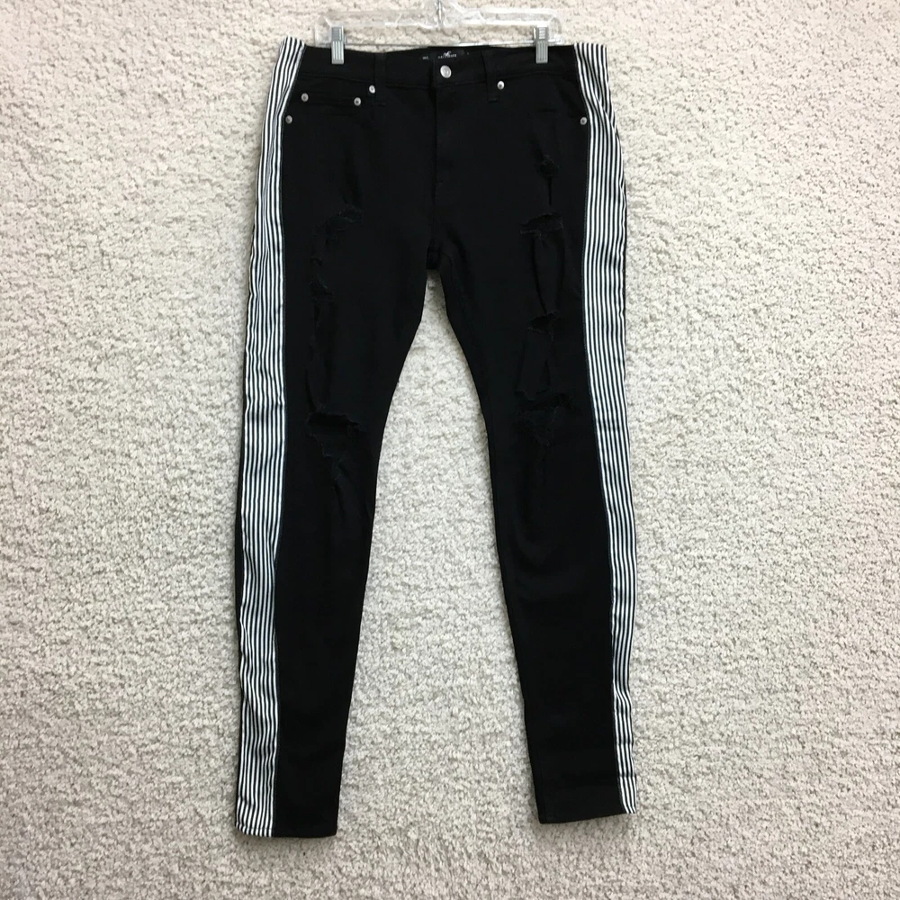 Hollister Jeans 33x32 (Fits 34x34) Men Black Stacked Skinny Stretch Ripped Denim