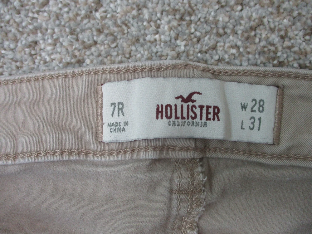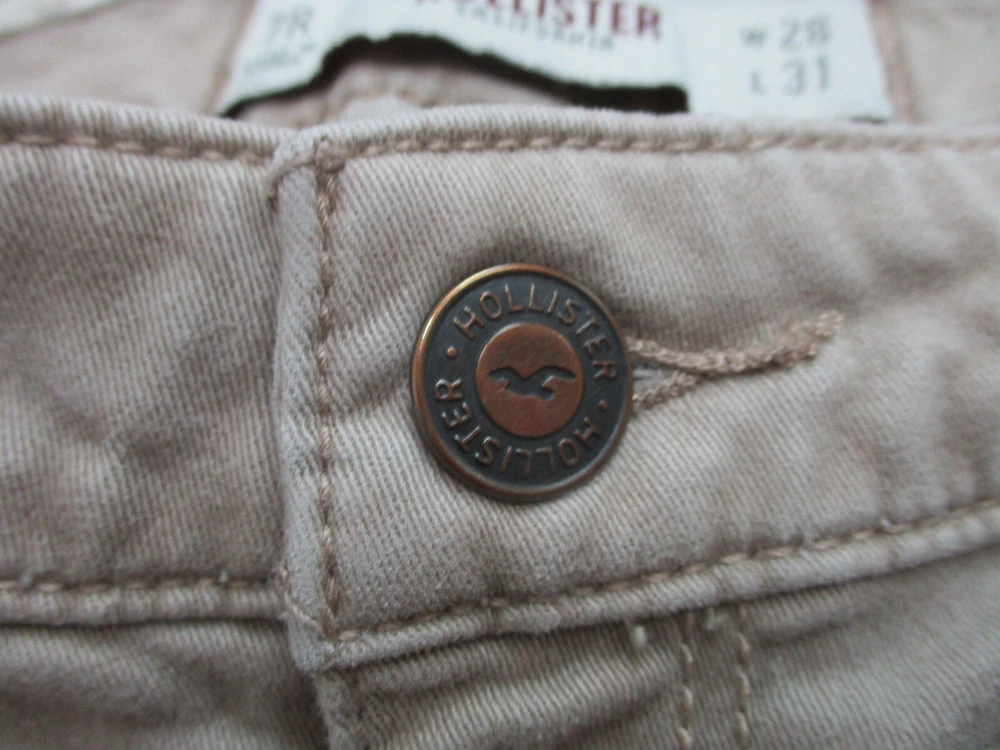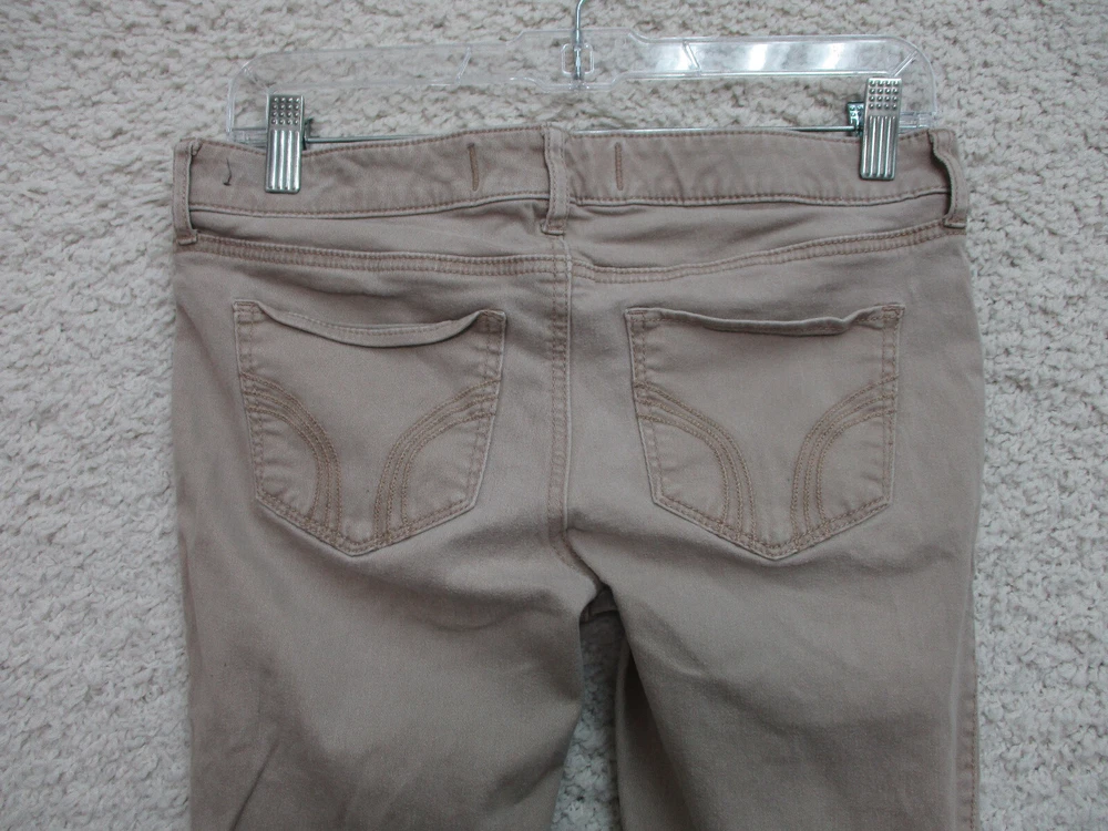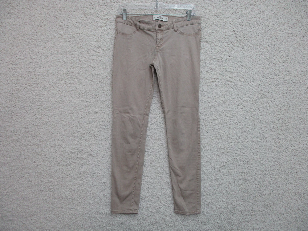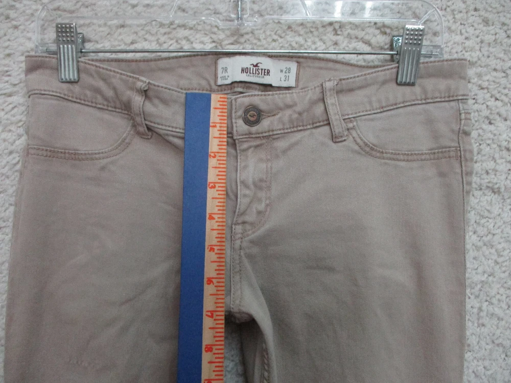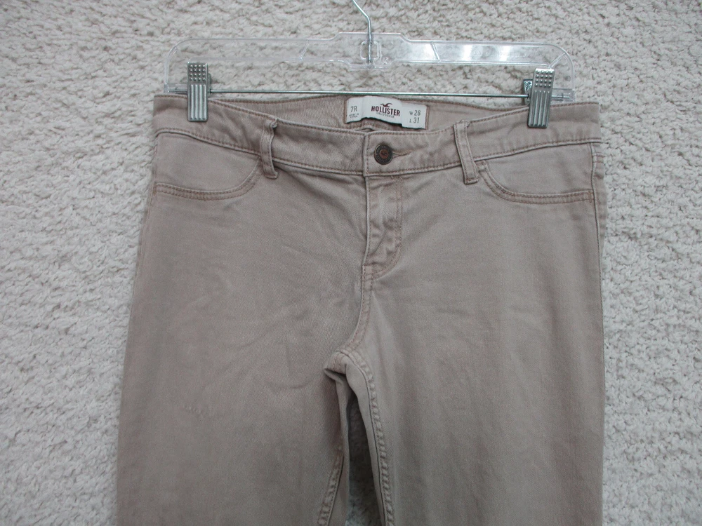 Pattern: Solid Size Type: Juniors Type: Jeans Season: Fall, Spring, Summer, Winter Suspender Buttons/Belt Loops: Belt Loops Size: 7 Accents: Button, Logo Pocket Type: 5-Pocket Design Closure: Zip Brand: Hollister Department: Women Inseam: 29 in Fabric Type: Denim Garment Care: Machine Washable Fit: Regular gtin13: Does Not Apply Rise: Mid (8.5-10.5 in) Features: Comfort, Easy Care, Pockets, Stretch Theme: American, Logo, Modern Waist Size: 28 in Color: Brown Country/Region of Manufacture: China UPC: Does Not Apply Style: Skinny Material: Cotton, Spandex Seller Notes: “Very Good Used Condition. Please, See Pictures for Full Condition and Measurements.”