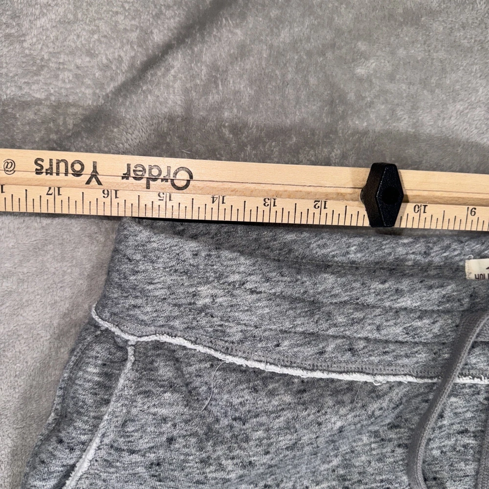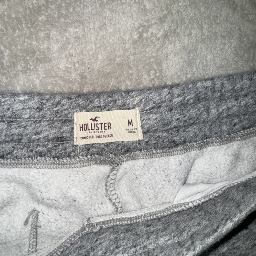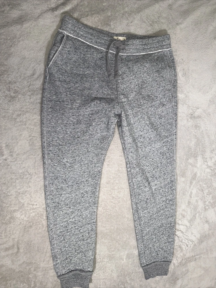 Inseam: 27 in Size: M Accents: Logo Closure: Drawstring Fabric Type: Fleece Features: Pockets Department: Men Theme: Logo Type: Pants Pattern: Solid Material: Cotton Blend Leg Style: Tapered Color: Gray Occasion: Casual Waist Size: 30 in Front Type: Flat Front Size Type: Regular Style: Jogger Brand: Hollister Vintage: No Fit: Regular