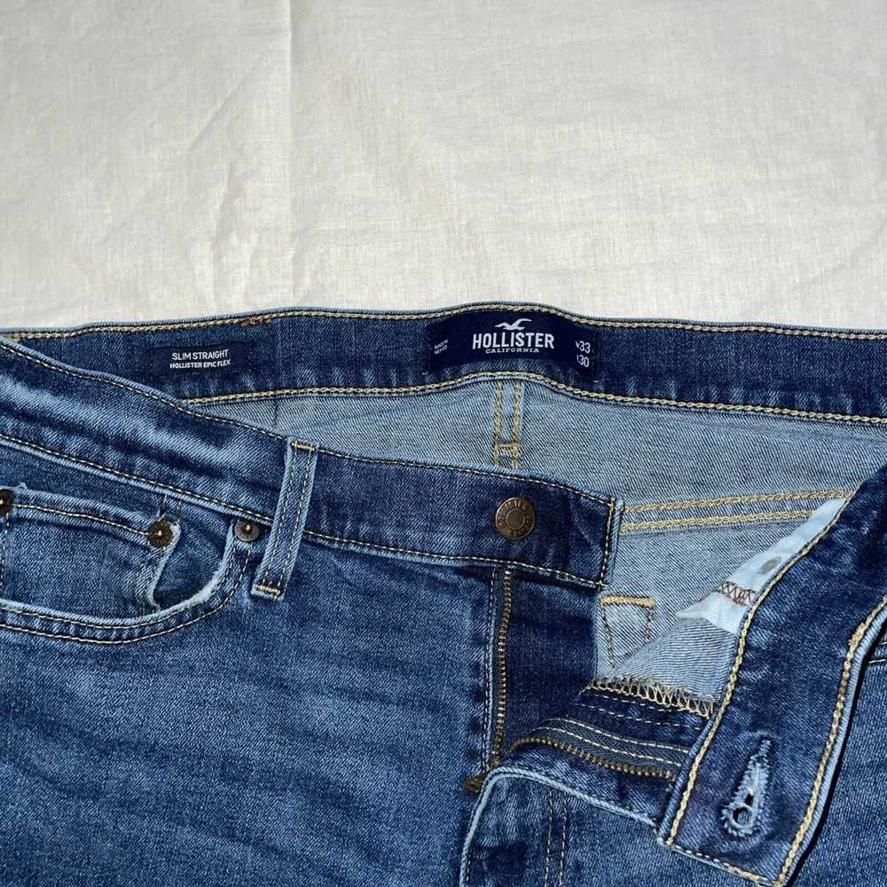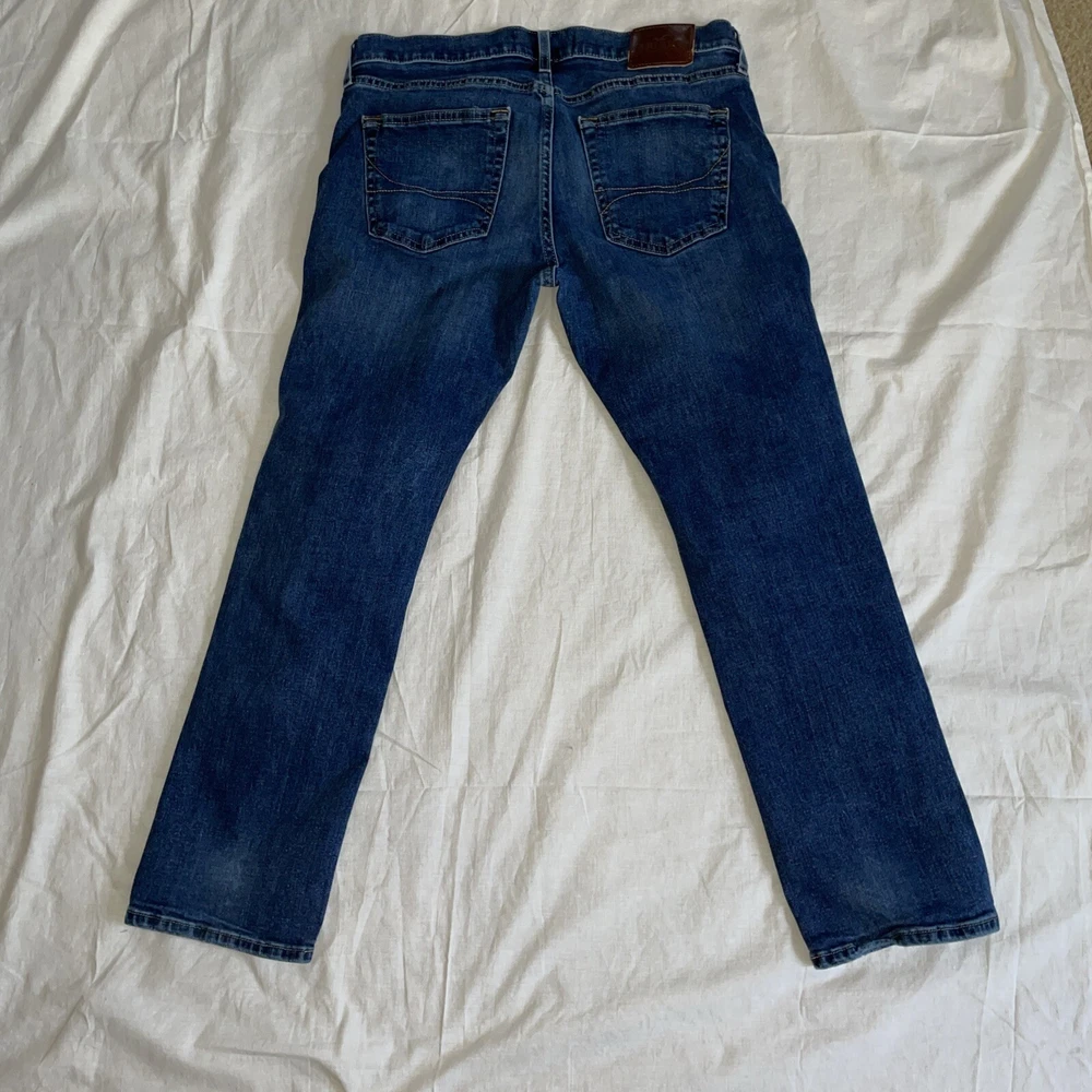 Elevate your style game with these Hollister men's skinny jeans. The deep blue wash and slim fit make them perfect for any occasion. Crafted from high-quality fabric, these jeans are designed to provide comfort and durability. They feature a 33-inch waist and 30-inch leg, making them a great fit for men of all sizes. The Hollister brand is known for its superior quality, and these jeans are no exception. They are perfect for men who want to look their best while staying comfortable.