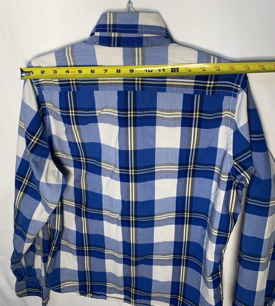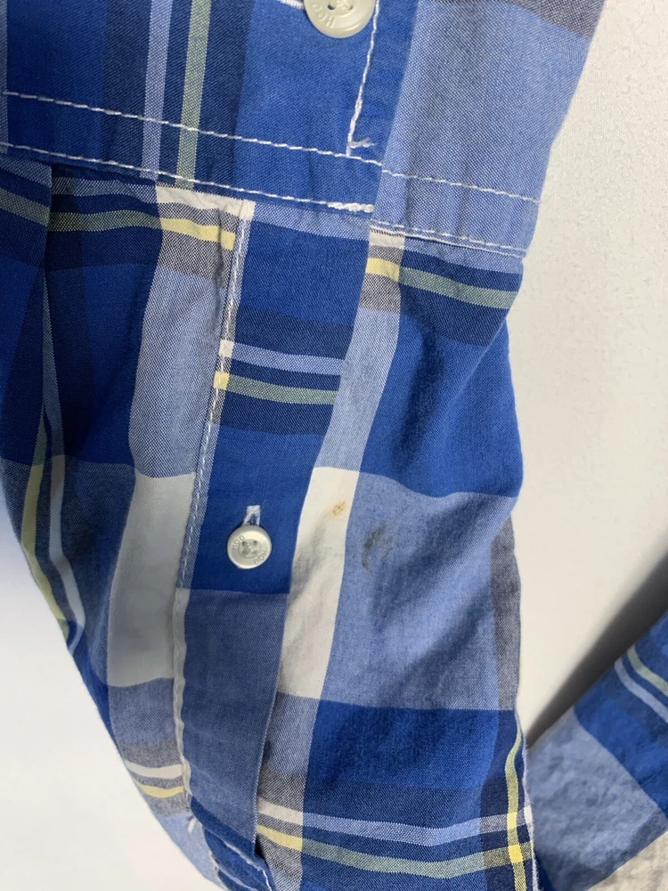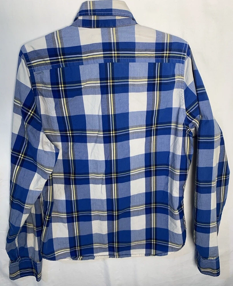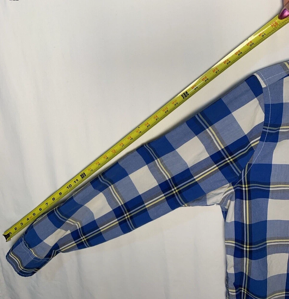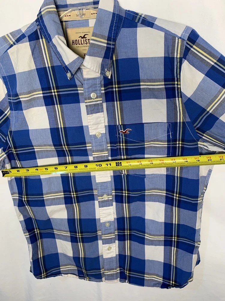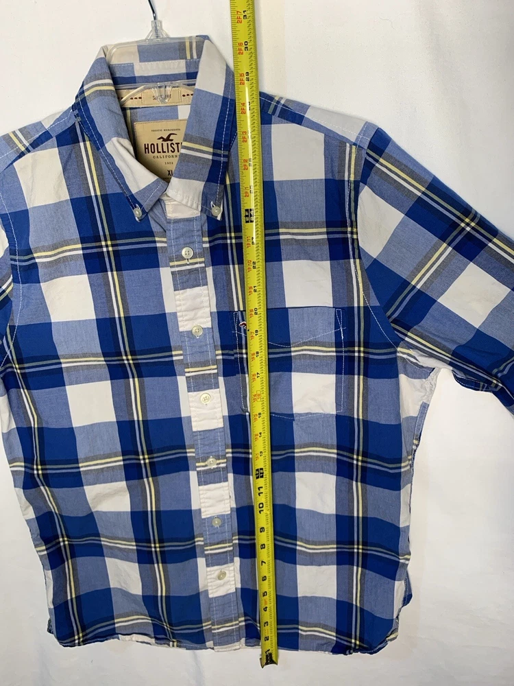 Hollister Mens Surfer Cut Shirt XL Blue White Yellow Plaid Button Down There is a small stain on the inside of the arm near the cuff as seen in the photo. Please see photos for size measurements. Please see all photos as they are part of the description. We try to list as many details as possible, however some items are vintage and pre-owned so flaws are to be expected. We try to find out as much information as possible on each item we have available. On occasion we may make a mistake and appreciate your feedback.