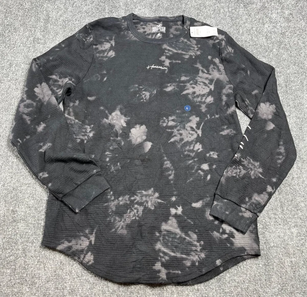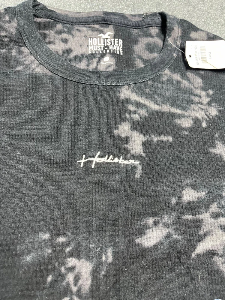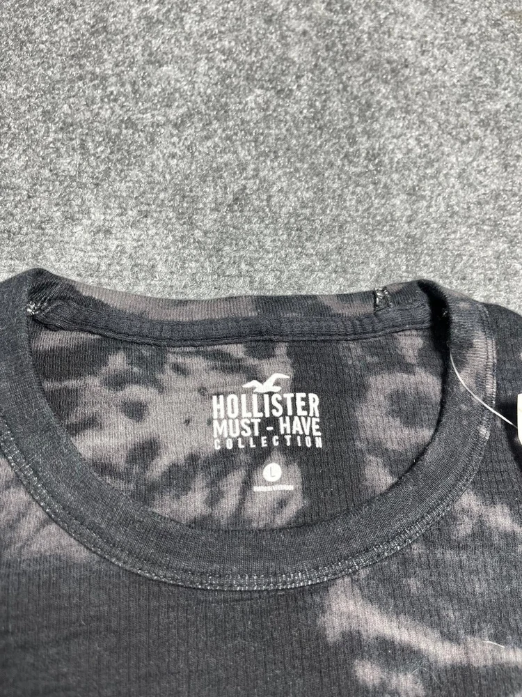 Hollister Must Have Collection T-Shirt Crewneck Long Curved Hem Black Tie Dye L