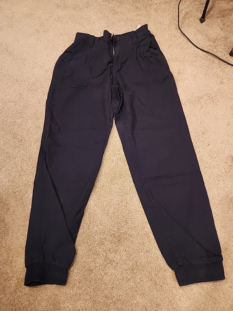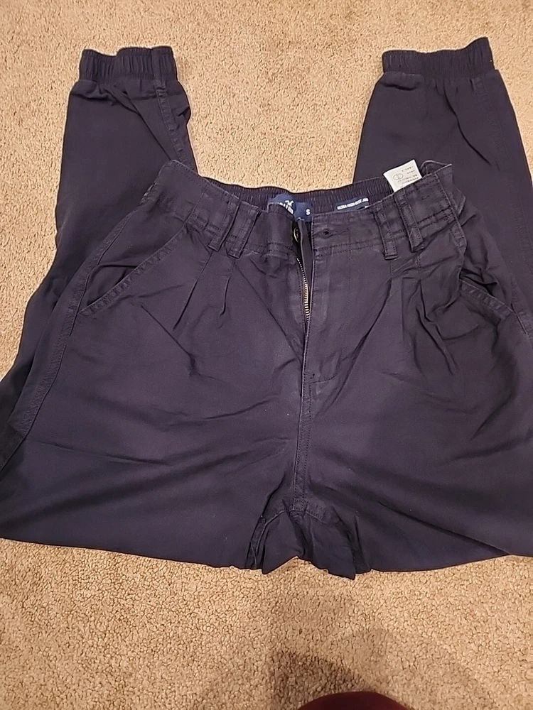 Add some comfortable style to your wardrobe with these stylish Hollister pants for women. The pants are made with a cotton blend material and feature a mid-rise and tapered leg style. They also come in a beautiful black color and have a front type of pleated and closure with a zipper and one button. These regular fit pants have stretch and pockets for your convenience and can be machine washed for easy care. Perfect for casual occasions, these jogger-style pants are sized S and are a great addition to any woman's clothing collection.